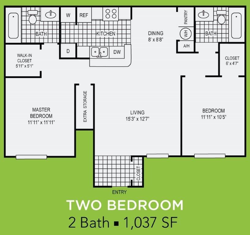 Apartment Model: Two Bedroom 2 BathFrom $1,2602 Bedroom, 2 Bath, 1037 sq ftAvailable Now![]()