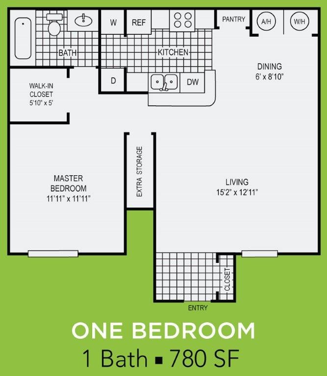 Apartment Model: One BedroomFrom $1,1201 Bedroom, 1 Bath, 780 sq ftAvailable NowFloorplansPhotos![]()