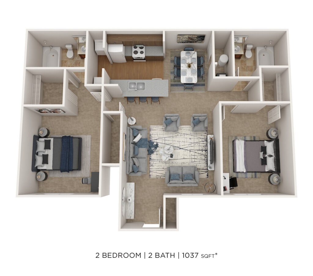 2 Beds, 2 Baths, 1037 sq ftAvailable NowModel Gallery