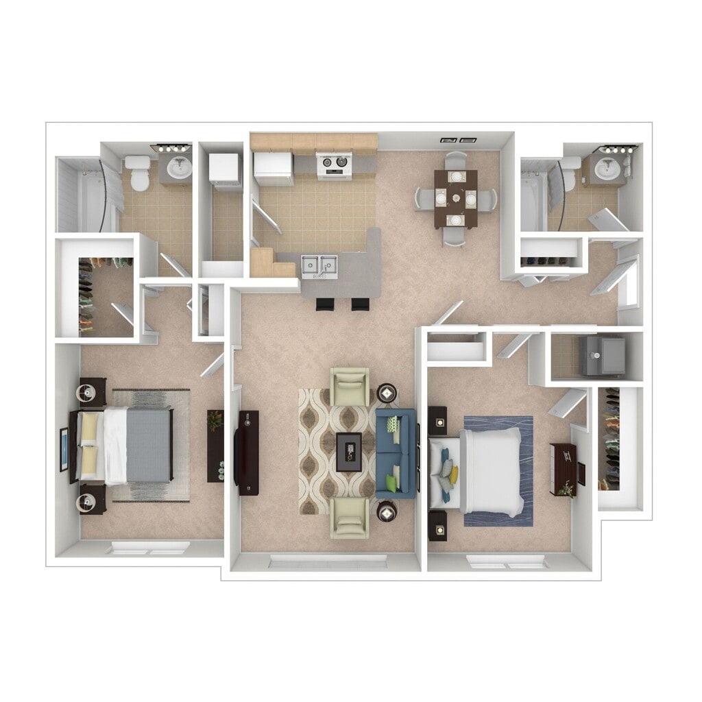 2 Beds, 2 Baths, 1055 sq ftTotal Monthly PriceAvailable NowModel Gallery