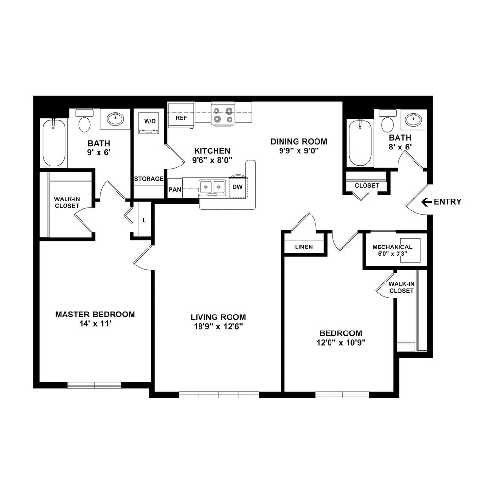 Two Bedroom Two Bathroom A Market - Floorplan 2 ![]()