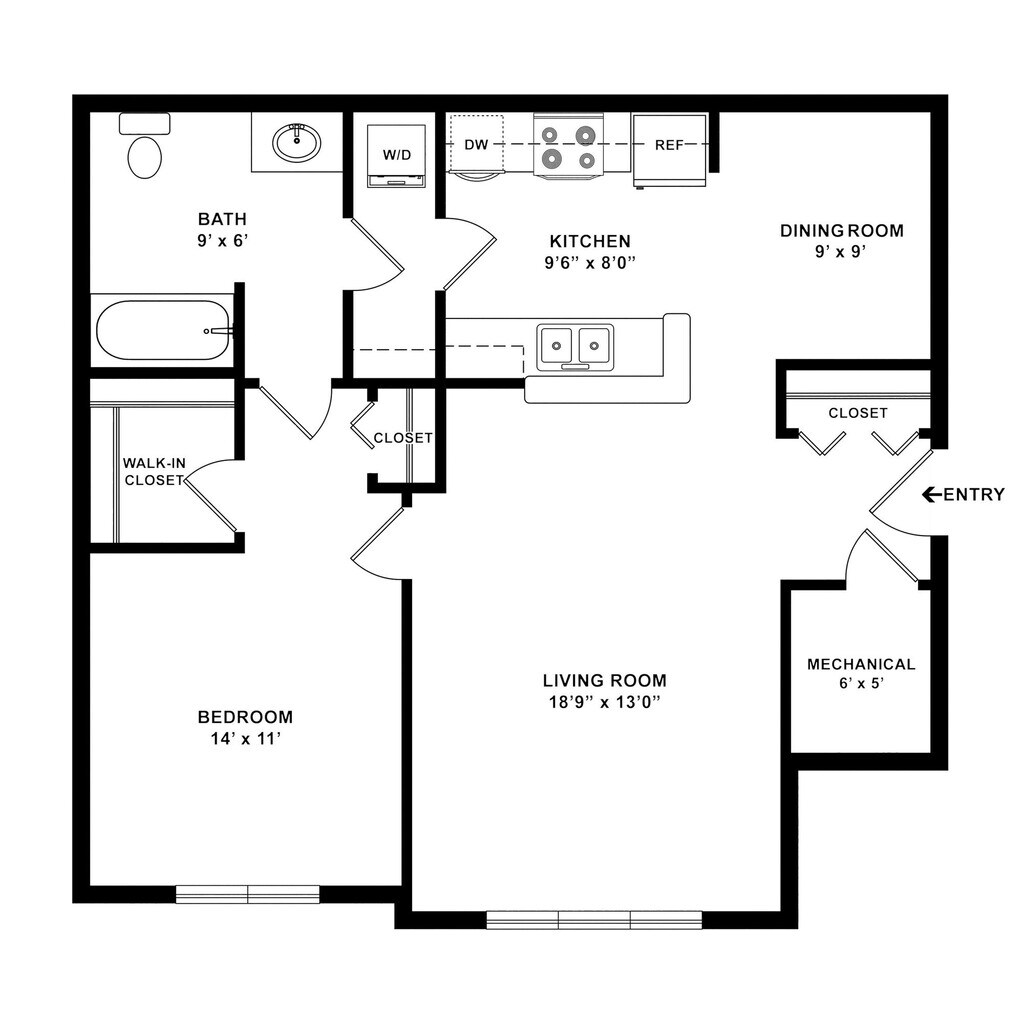 One Bedroom One Bathroom Market - Floorplan 1 ![]()