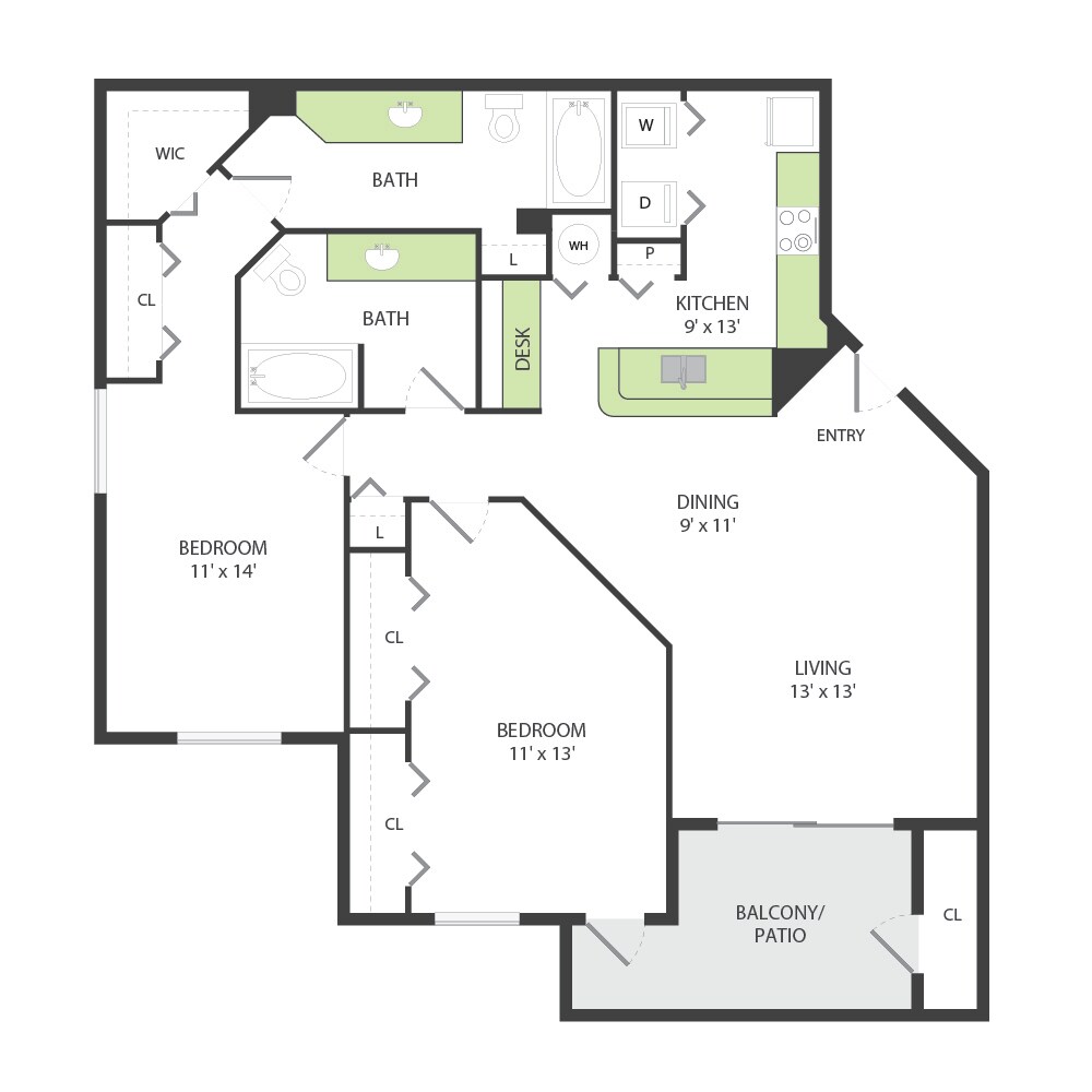 2 Beds, 2 Baths, 1111 sq ftAvailable NowModel Gallery