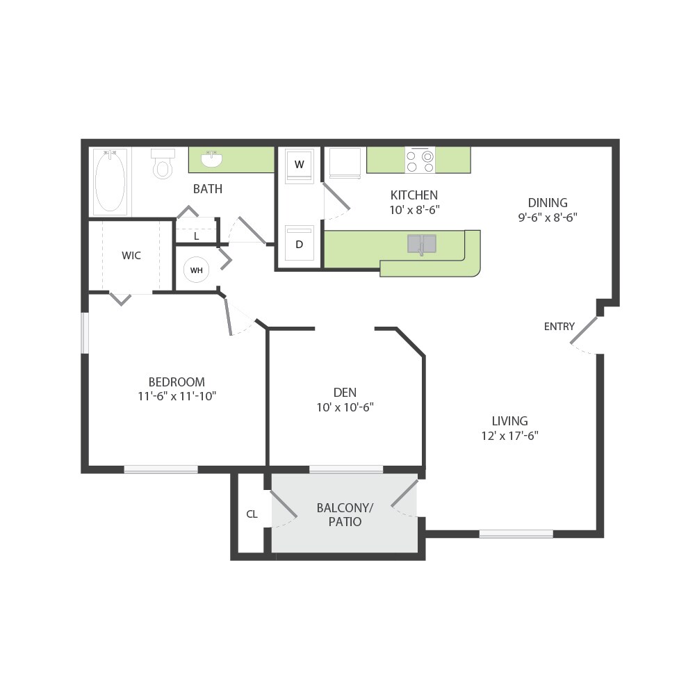 1 Bed, 1 Bath, 689 sq ftModel Gallery