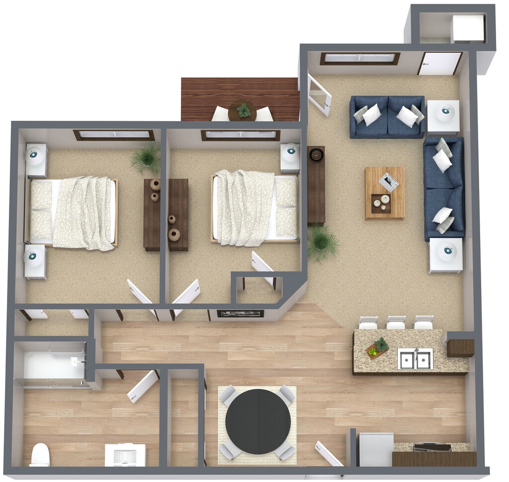 2 Beds, 2 Baths, 970 sq ftPlus FeesAvailable NowModel Gallery