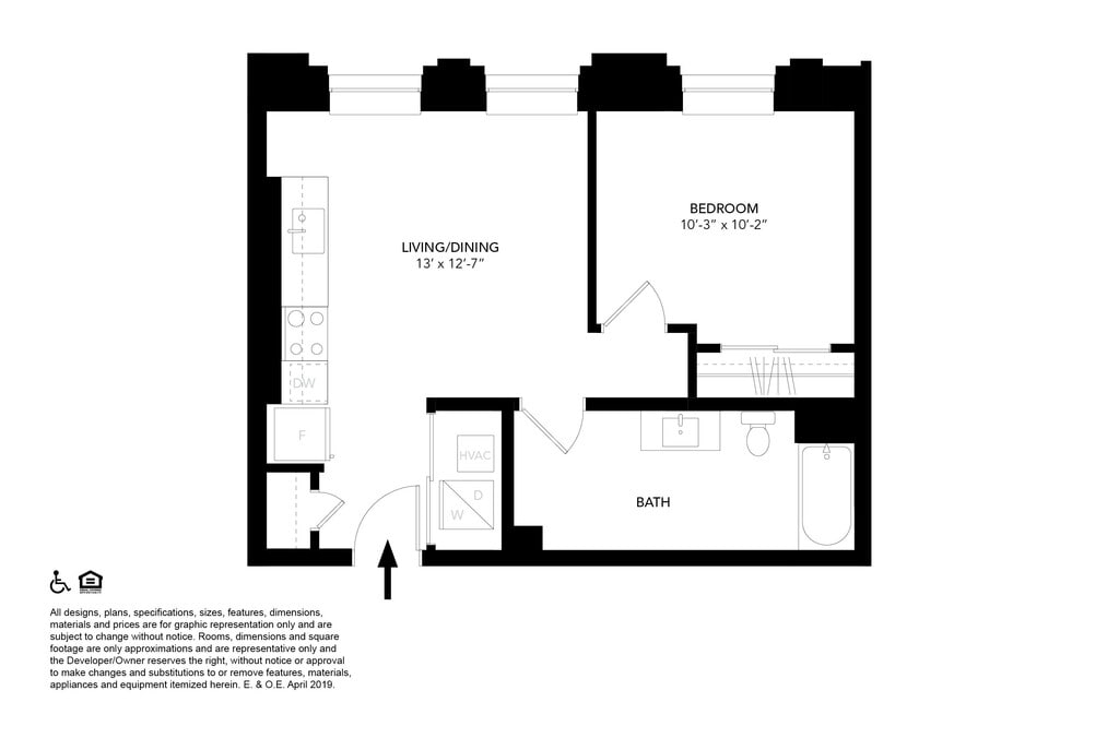 Apartment Model: Unit F2$1,6501 Bedroom, 1 Bath, 561 sq ftUnavailable![]()