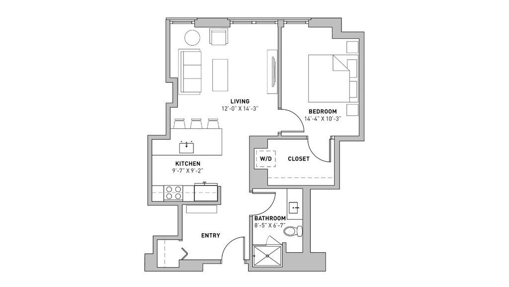 Apartment Unit: 905Apartment Model: One Bedroom$2,2151 Bedroom, 1 Bath, 685 sq ftAvailable July 1, 2026Floor plans are artist's rendering. All dimensions are approximate. Actual product and specifications may vary in dimension or detail. Not all features are available in every rental home. Please see a representative for details.