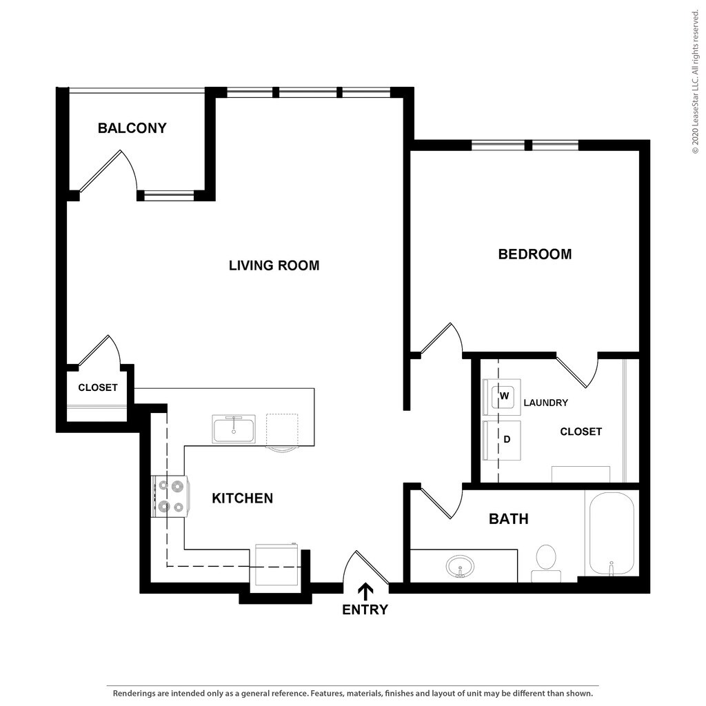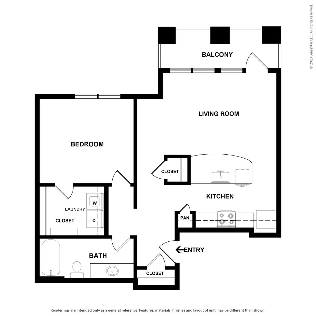1 Bed, 1 Bath, 607 sq ftAvailable NowModel Gallery