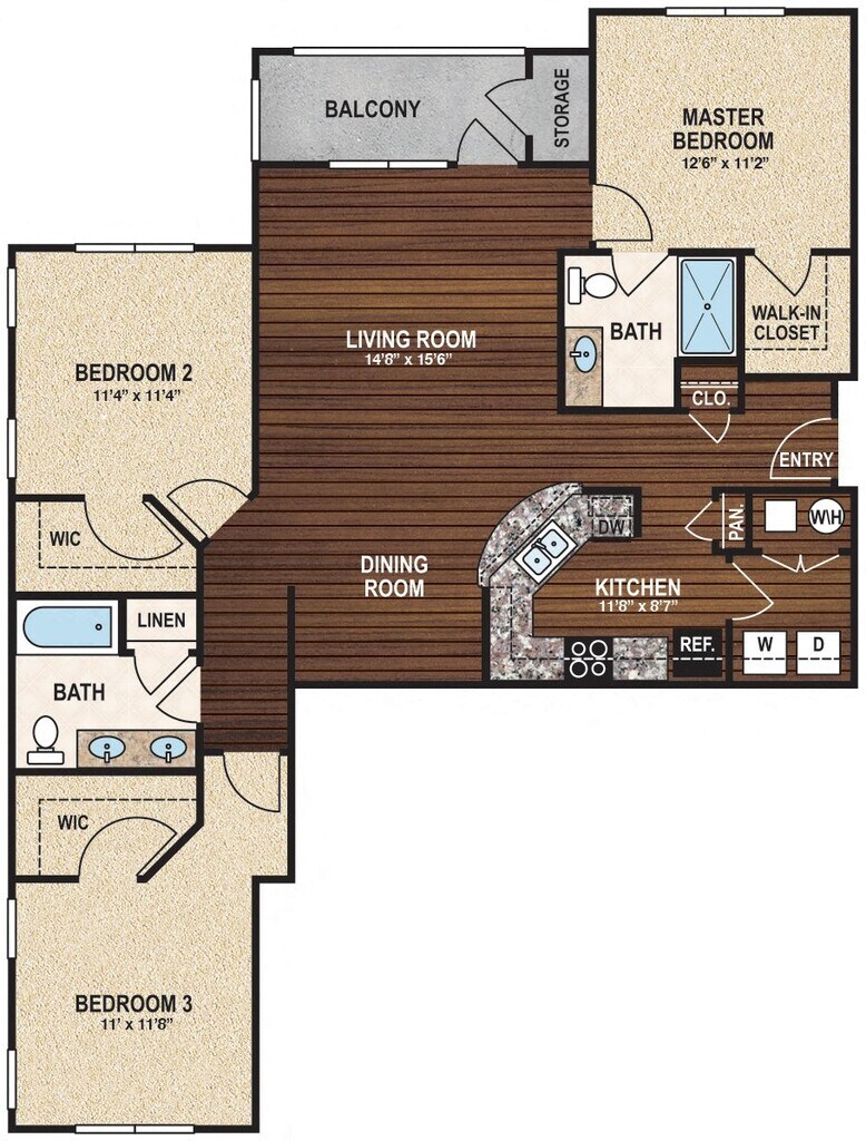 A3 - Floorplan 1 Apartment Unit: 5301Apartment Model: A3Call For Rates1 Bedroom, 1 Bath, 847 sq ftAvailable November 7, 20252 Bedrooms