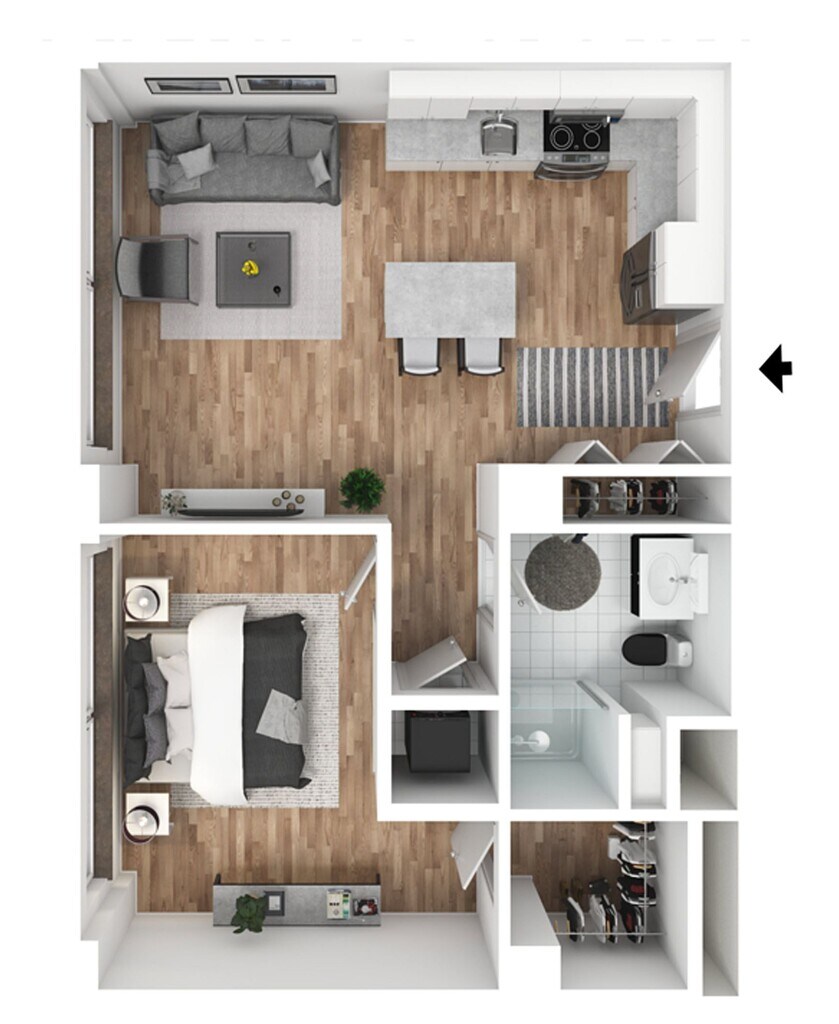 The Roosevelt - Floorplan 1 Apartment Unit: 415Apartment Model: The Roosevelt$1,3311 Bedroom, 1 Bath, 516 sq ftAvailable NowThe Lincoln