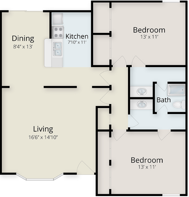 2 Beds, 1 Bath, 825 sq ftModel Gallery