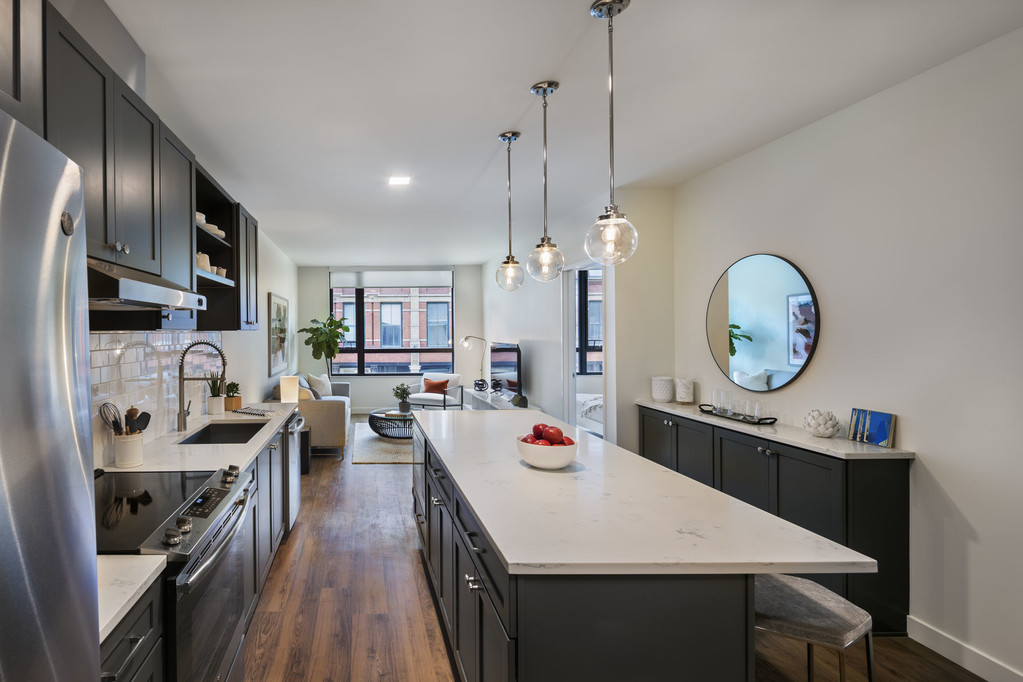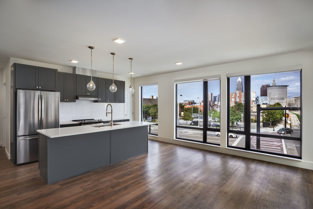 Quarter features luxury 1-bed, 2-bed and studio apartment homes in Clevelands historic Ohio City neighborhood. Each apartment is contemporary and timeless, with materials chosen for their beauty and durability. Residents are steps away from on-site amenities like a vibrant art gallery, grocery, dog park, and heated pool. Lounge on the rooftop patio and take in city and lake views.