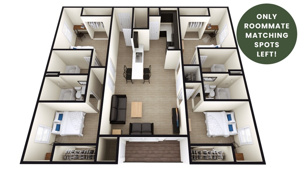 D - 4x4 - Floorplan 2 Apartment Unit: Entire UnitApartment Model: D - 4x4$1,9804 Bedroom, 4 Bath, 1220 sq ftAvailable NowApartment Unit: PrivateApartment Model: D - 4x4$2,6404 Bedroom, 4 Bath, 1220 sq ftAvailable NowApartment Unit: Entire UnitApartment Model: D - 4x4$2,6404 Bedroom, 4 Bath, 1220 sq ftAvailable Now