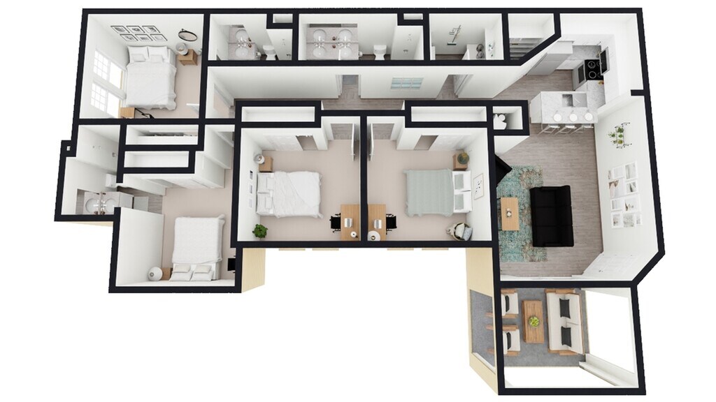 Standard - C2 - 3x2 - Floorplan 1 Apartment Unit: PrivateApartment Model: Standard - C2 - 3x2$6553 Bedroom, 2 Bath, 1200 sq ftAvailable August 15, 20264 Bedrooms