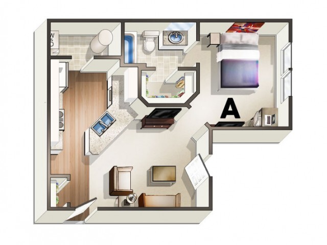 Apartment Model: A1 Floor Plan (Royal)From $1,2421 Bedroom, 1 Bath, 580 sq ftAvailable Now![]()