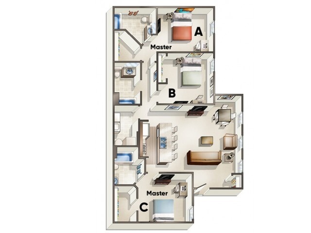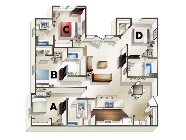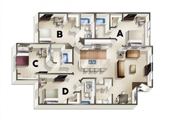 B2 Floor Plan (Burgundy) - Floorplan 1 Apartment Unit: Furnished Per PersonApartment Model: B2 Floor Plan (Burgundy)$8072 Bedroom, 2 Bath, 956 sq ftAvailable NowApartment Unit: Entire Unit FurnishedApartment Model: B2 Floor Plan (Burgundy)$1,4622 Bedroom, 2 Bath, 956 sq ftAvailable August 14, 2026Apartment Unit: Furnished Per PersonApartment Model: B2 Floor Plan (Burgundy)$8822 Bedroom, 2 Bath, 956 sq ftAvailable August 14, 2026B3 Floor Plan (Dauphine)