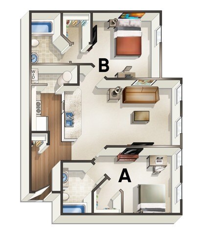 2 Beds, 2 Baths, 956 sq ftAvailable NowModel Gallery