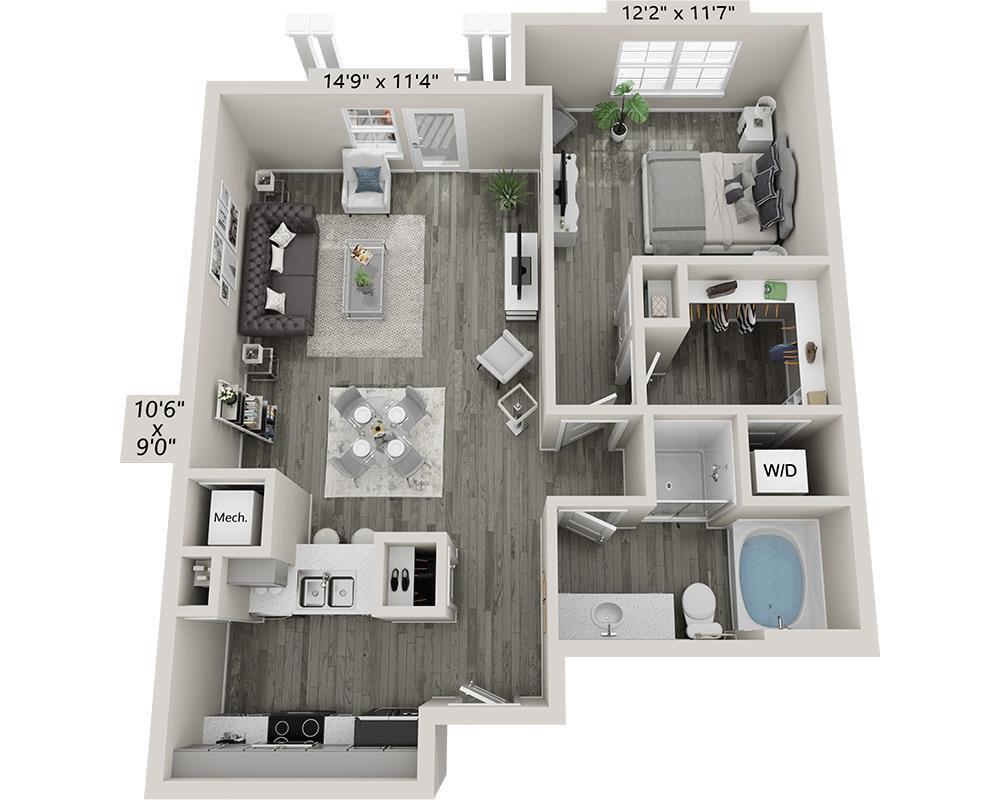 1 Bed, 1 Bath, 794-863 sq ftAvailable January 9, 2026Model Gallery