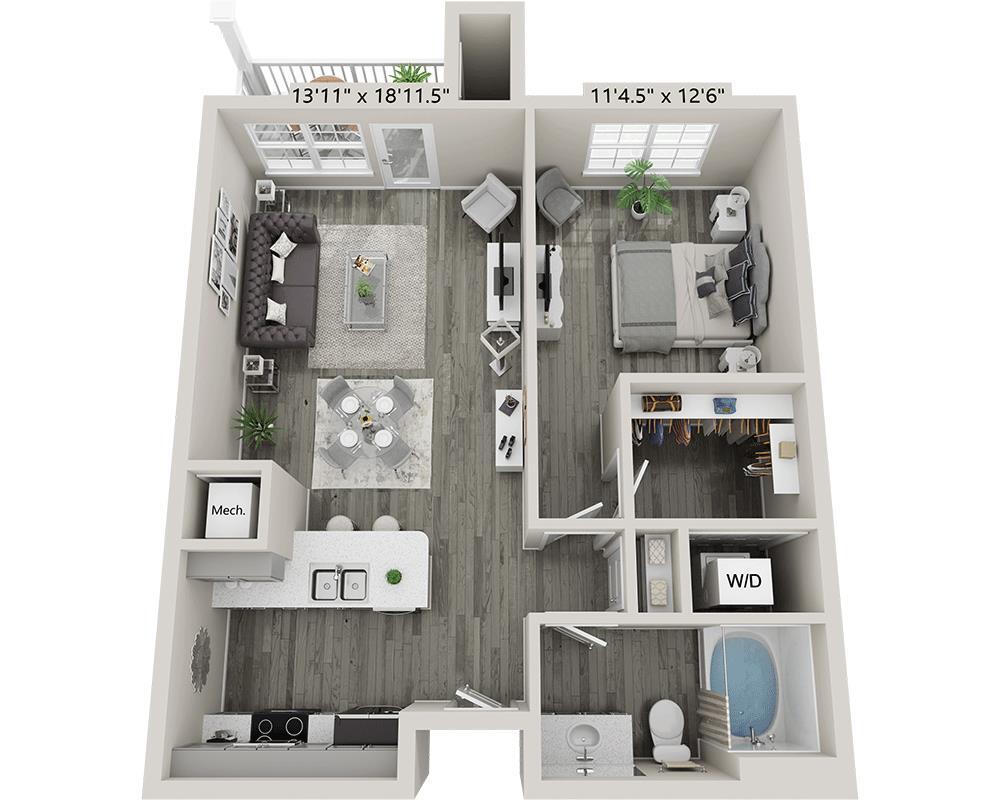 Apartment Model: One Bedroom A1B$1,7261 Bedroom, 1 Bath, 794-863 sq ftAvailable January 9, 2026![]()