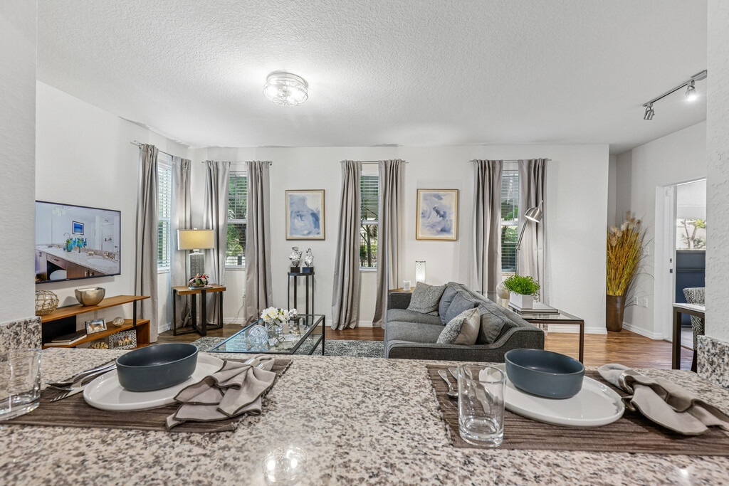 The current rent special at The Quaye at Palm Beach Gardens is: Experience elevated living in our spacious two-bedroom, two-story homes at Quaye Palm Beach Gardens. Designed with an open-concept floor plan, these residences offer seamless flow between the kitchen, dining, and living areas — perfect for everyday living and effortless entertaining. The expansive kitchen peninsula creates the ultimate hosting space, ideal for gathering with friends or casual dining. Both bedrooms are generously sized to accommodate king-sized furniture comfortably, and with 2.5 baths, you’ll enjoy added convenience for guests and everyday routines alike. Each home also features an attached garage equipped with an electric vehicle charger, blending modern comfort, functionality, and thoughtful design into one exceptional living experience..