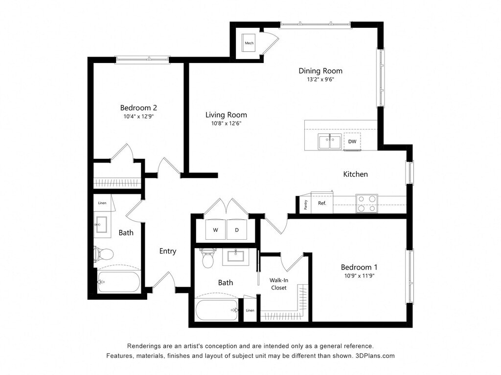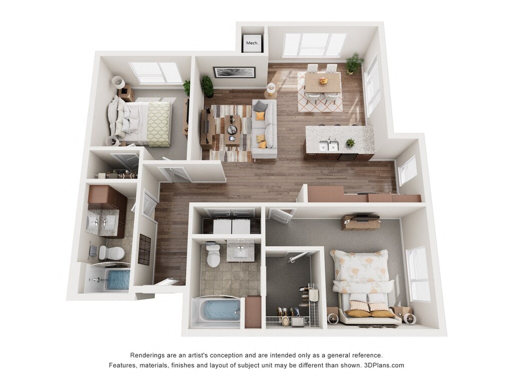 2 Beds, 2 Baths, 1121 sq ftLargest 2 BedroomThis is the largest 2 Bedroom at this PropertyModel Gallery