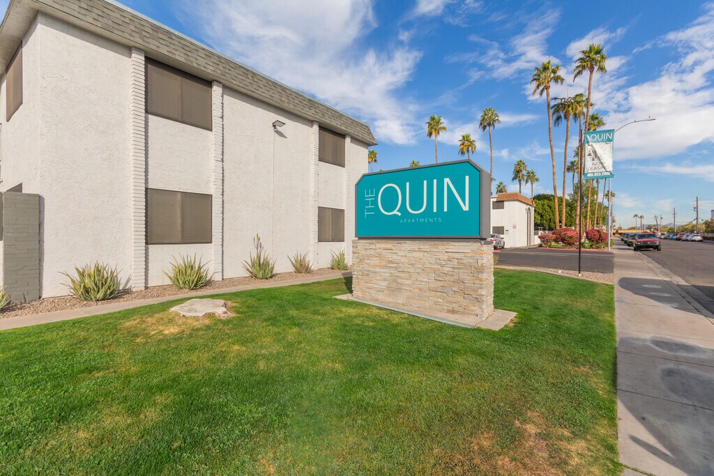 Our team at The Quin Apartments would like to welcome you home to our beautiful, gated community in Mesa Arizona. We currently offer newly renovated 1- and 2-bedroom floor plans. Each spacious home is equipped with a full stainless steel appliance package, in-unit washers and dryers, vinyl flooring throughout, central heating and air conditioning, ceiling fans, large closets, and more. Retreat in your new home surrounded by our beautifully landscaped grounds or relax in our refreshing swimming pool. The Quin's prime location places you minutes from schools and shopping while giving you quick access to the US 60 and Loop 202 freeways.