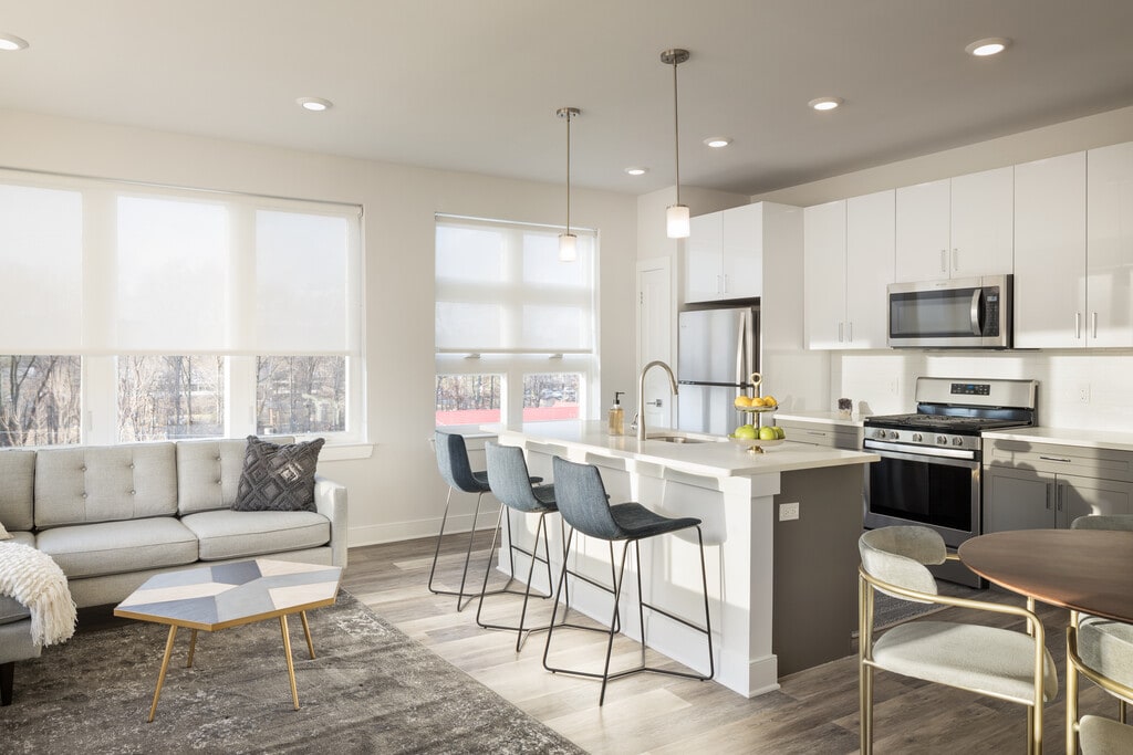 Hip and modern apartment living on the Raritan Valley Line. All the class + style of the city, all the comfort + convenience of the suburbs. Transit at your fingertips. Town at your door. Amenities right at home. Whether you’re escaping NYC or looking for a chic upgrade in apartment lifestyle, The Quin has what you need. High design. Curated spaces. Billiards lounge. Bark park. Yoga/spin room. Grilling stations. Floor-to-ceiling windows. Reserved parking. Attentive maintenance. Newly developed in March 2020. These sleek + stylish apartments are the QUINtessential apartment dweller’s dream. When will you be joining us?