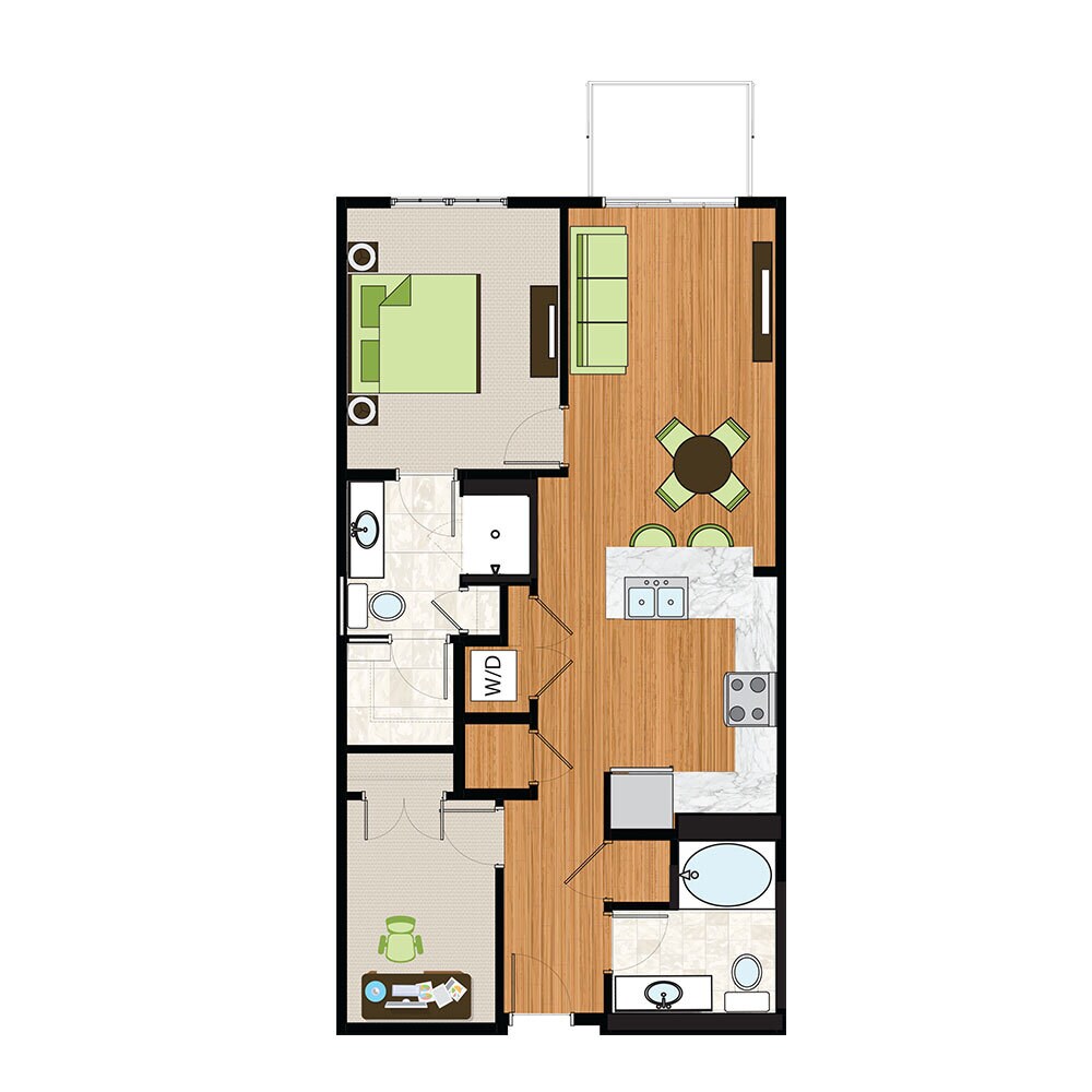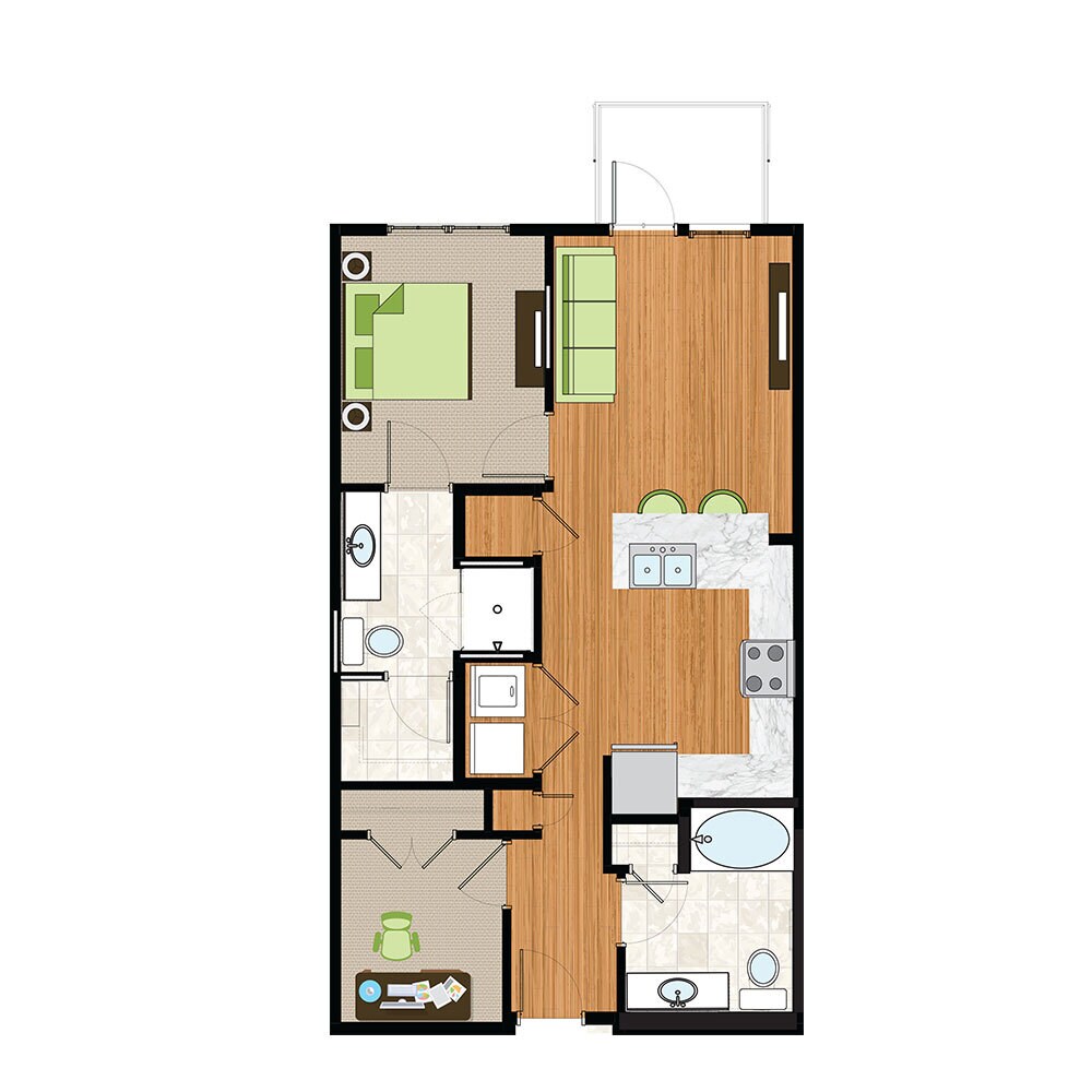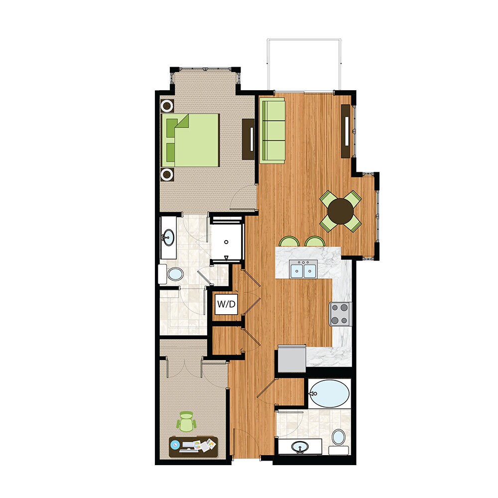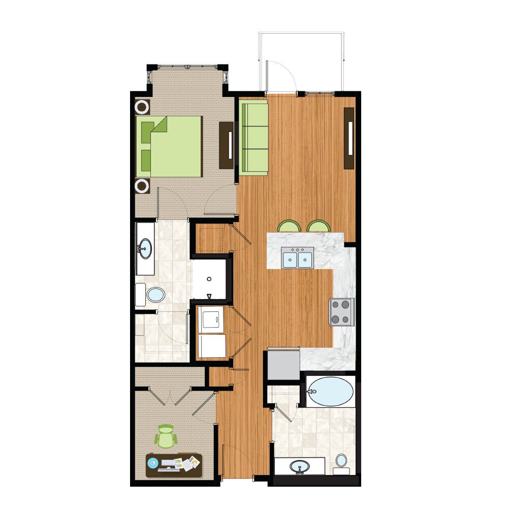 1 Bed / 1 Bath - Floorplan 7 1 Bed / 2 Baths with Den
