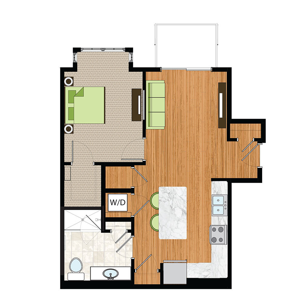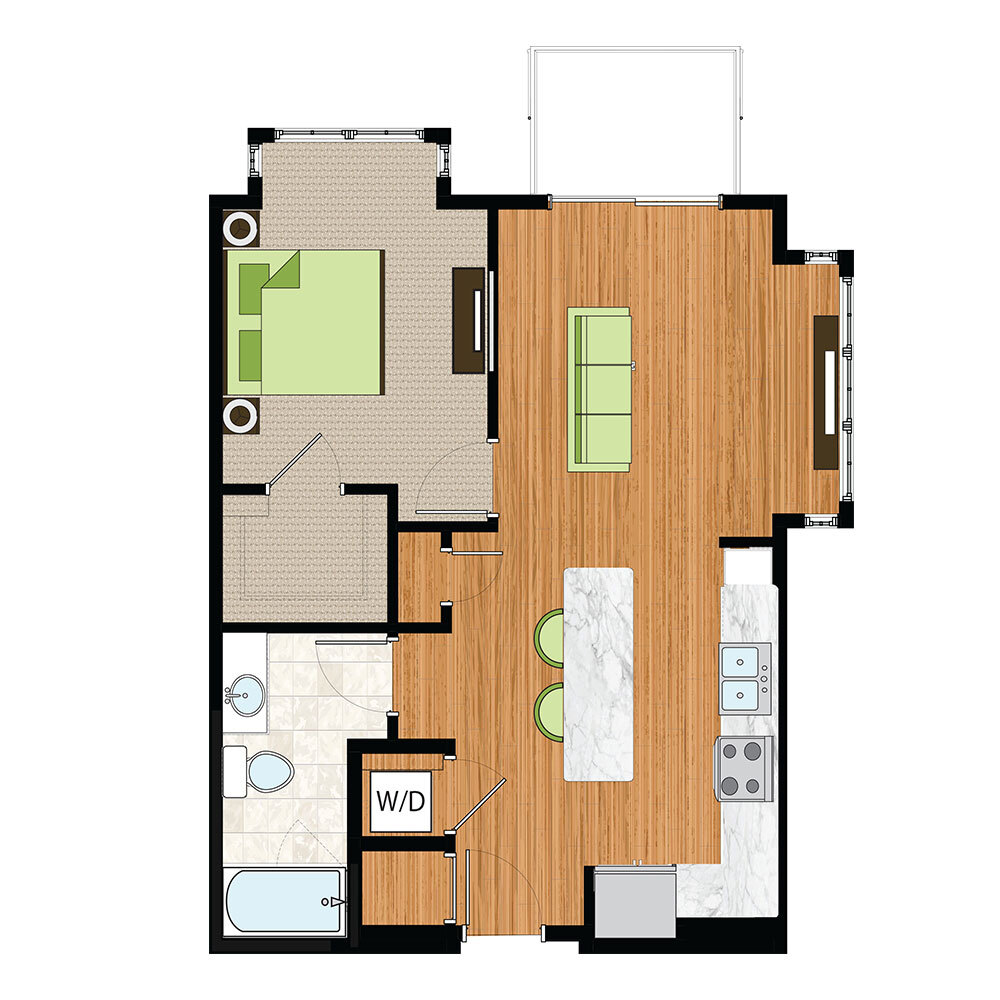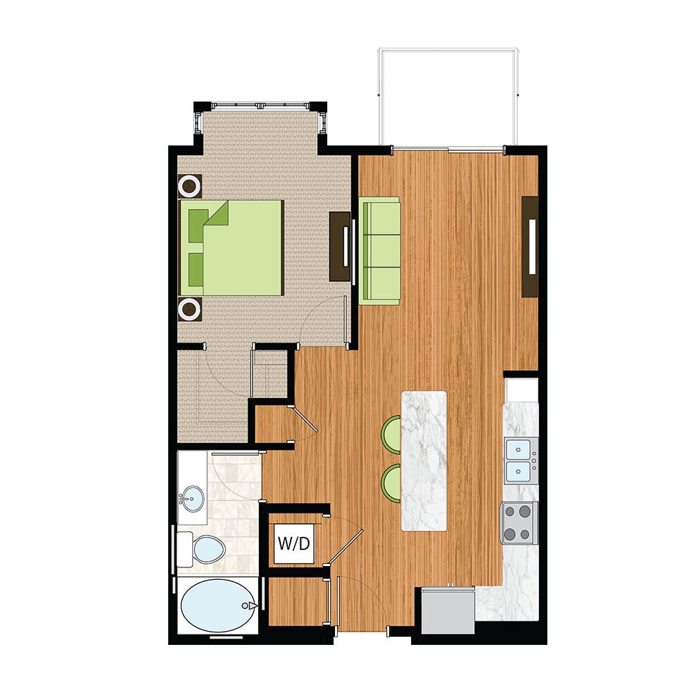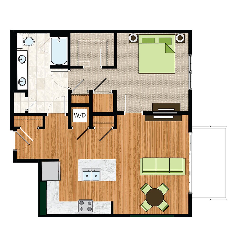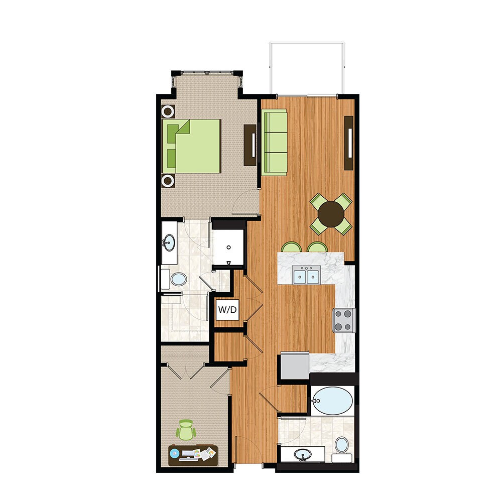 1 Bed / 1 Bath - Floorplan 7 1 Bed / 2 Baths with Den