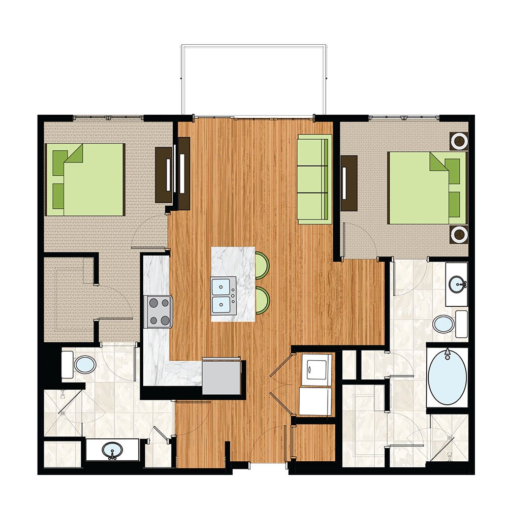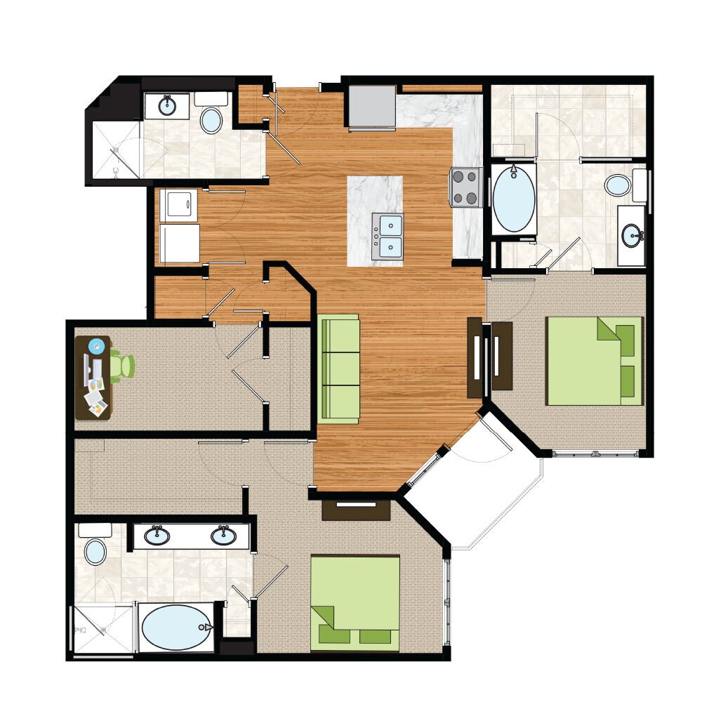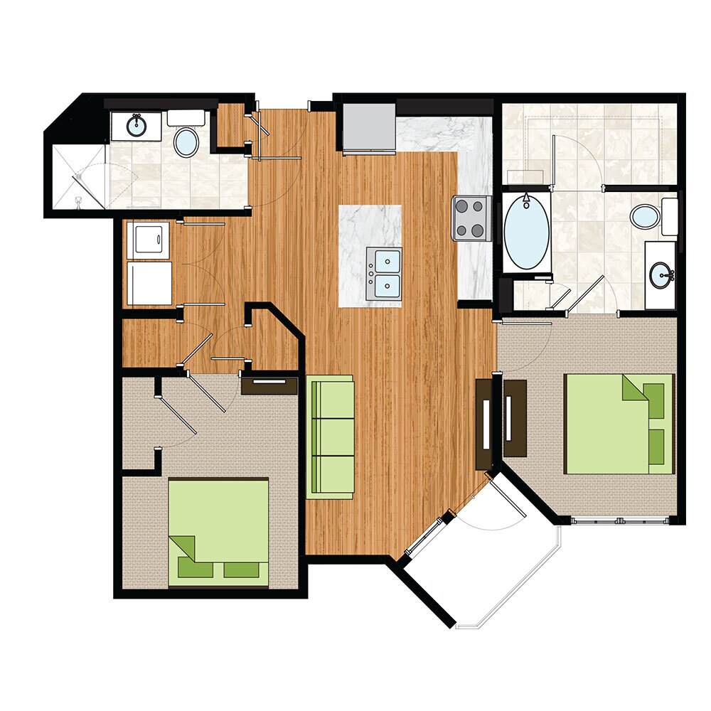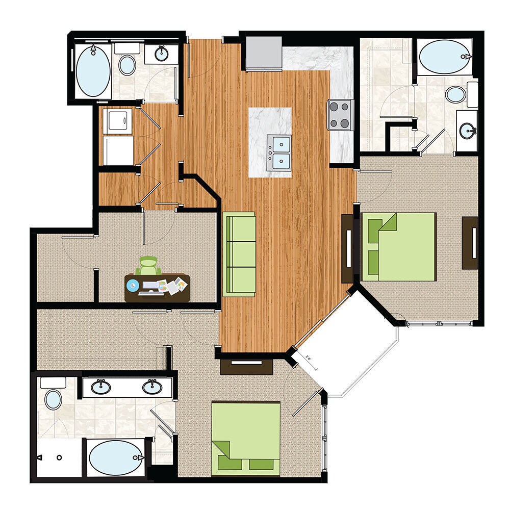 1 Bed / 2 Baths with Den - Floorplan 6 2 Bedrooms