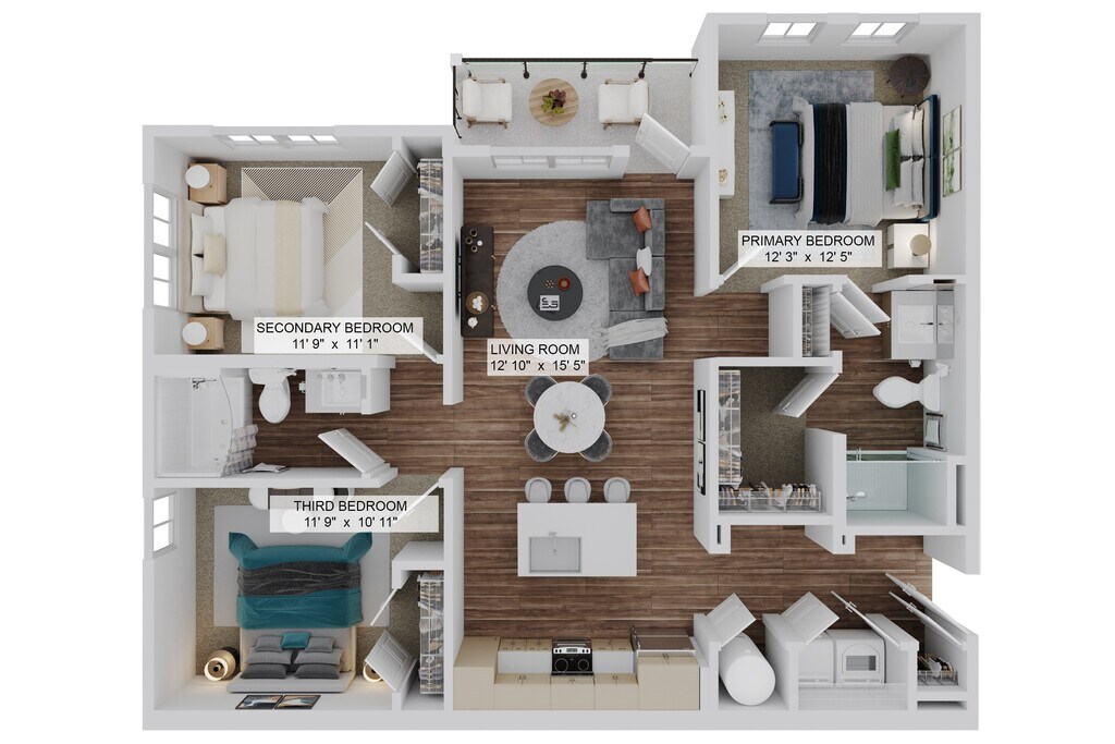 Apartment Model: The Gallery (C2)3 Bedroom, 2 Bath, 1369 sq ftAvailable Now![]()
