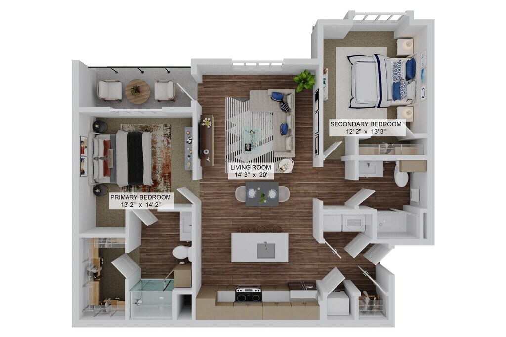 2 Beds, 2 Baths, 1075 sq ftAvailable NowCheapest 2 BedroomThis is the cheapest 2 Bedroom at this PropertyModel Gallery