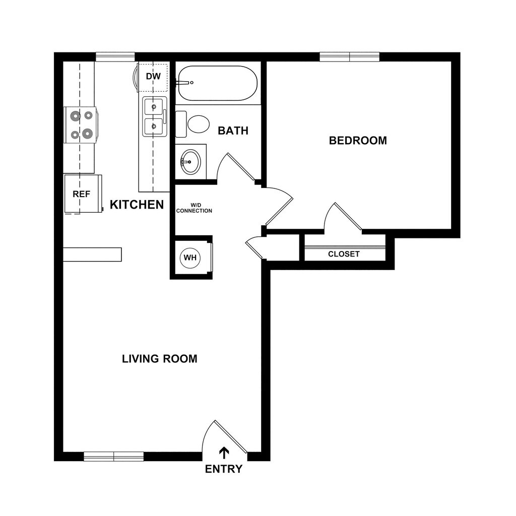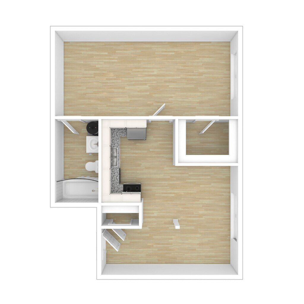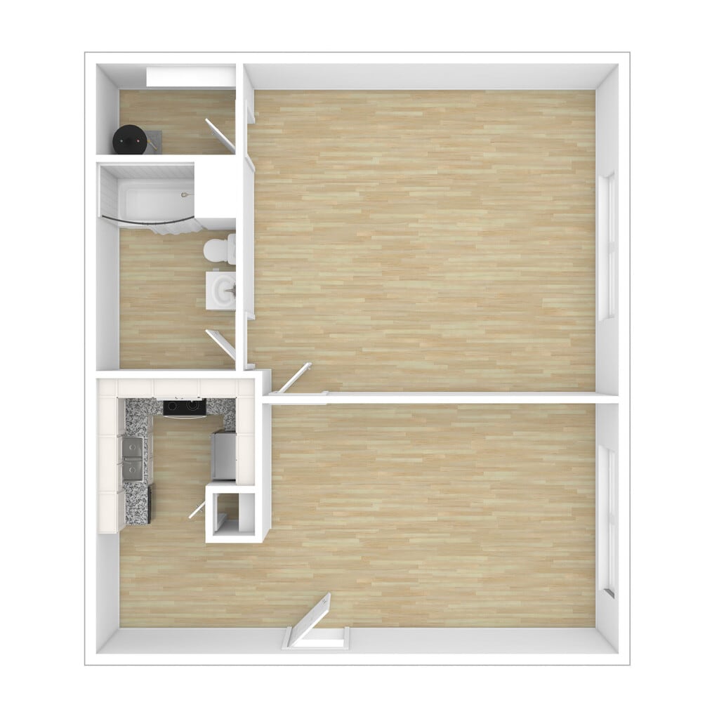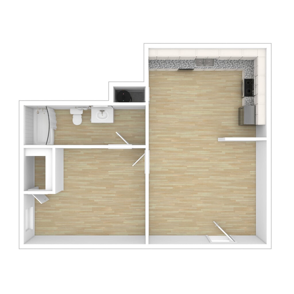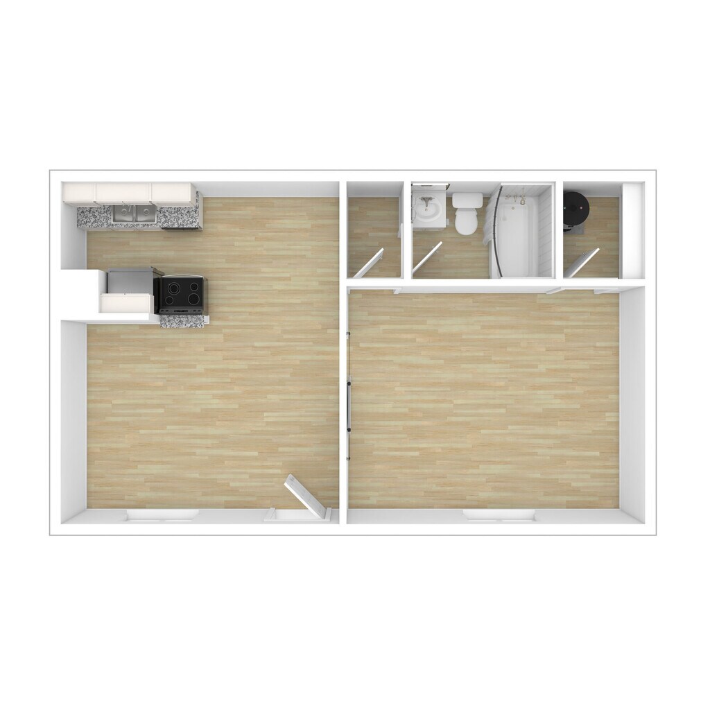A2C - Floorplan 3 Apartment Unit: D121Apartment Model: A2C$1,1251 Bedroom, 1 Bath, 500 sq ftAvailable NowFloorplan A2D