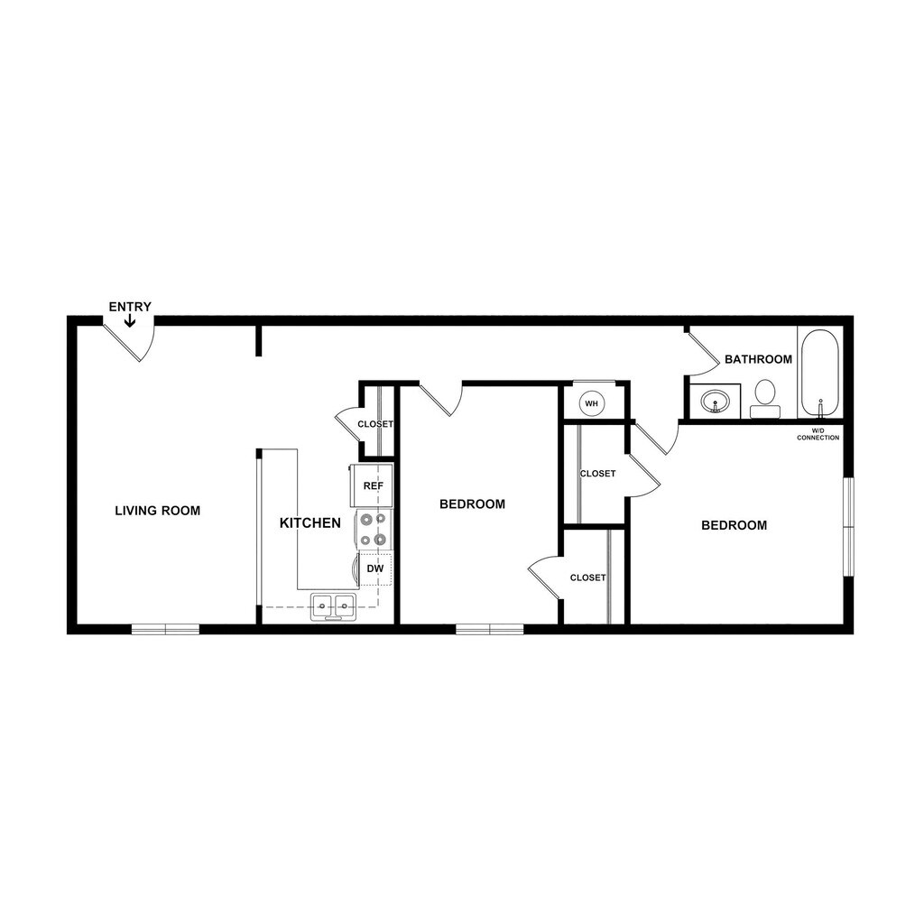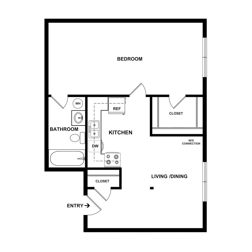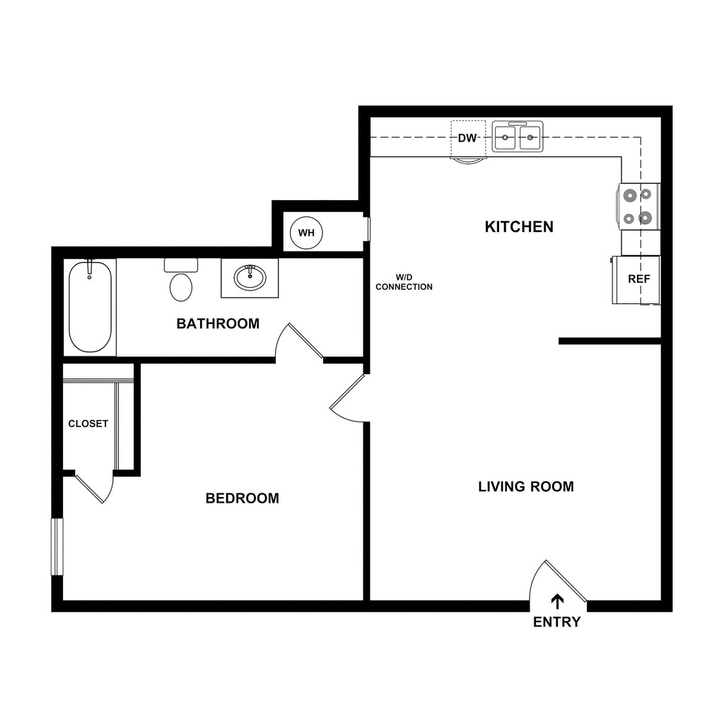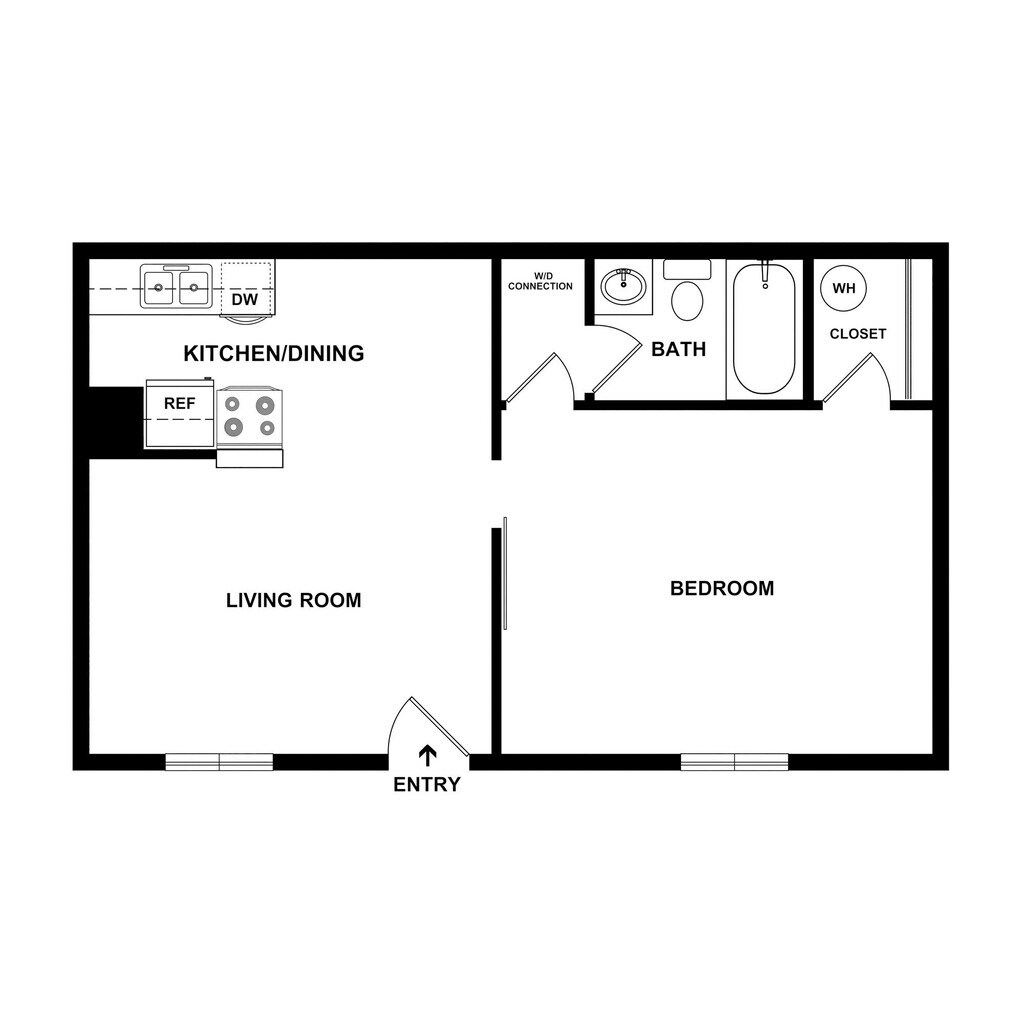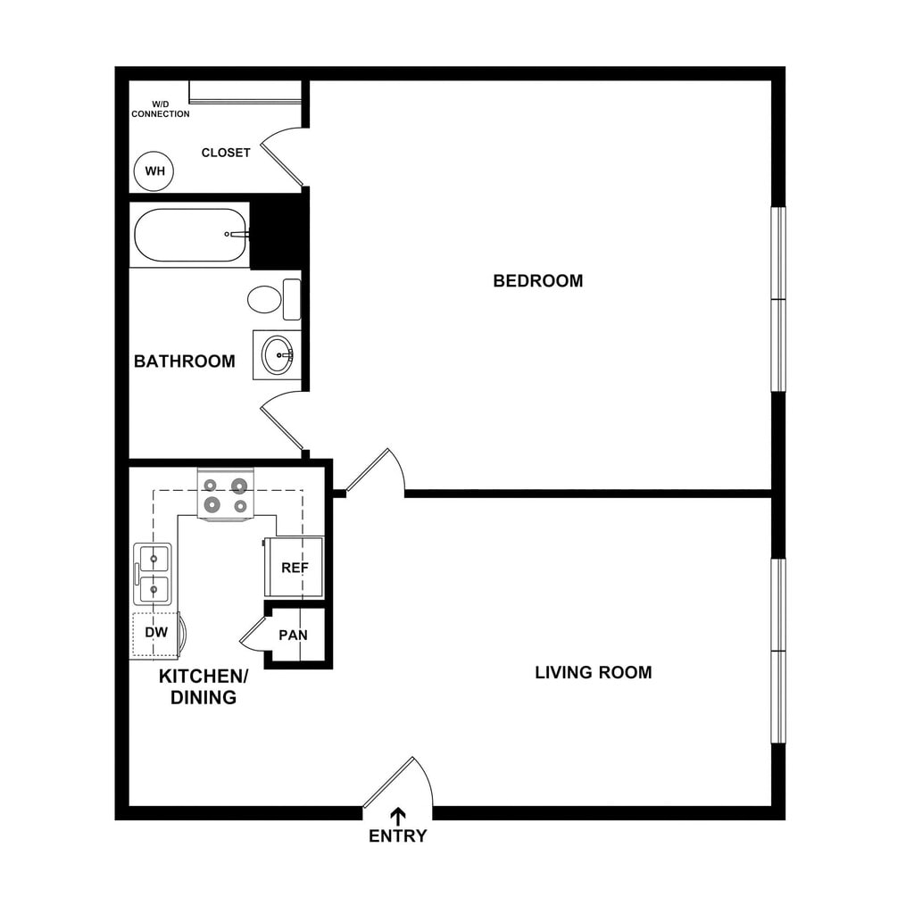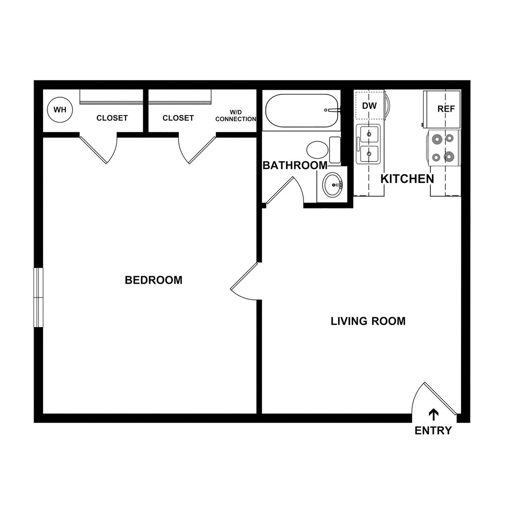 A2C - Floorplan 3 Apartment Unit: D121Apartment Model: A2C$1,1251 Bedroom, 1 Bath, 500 sq ftAvailable NowFloorplan A2D