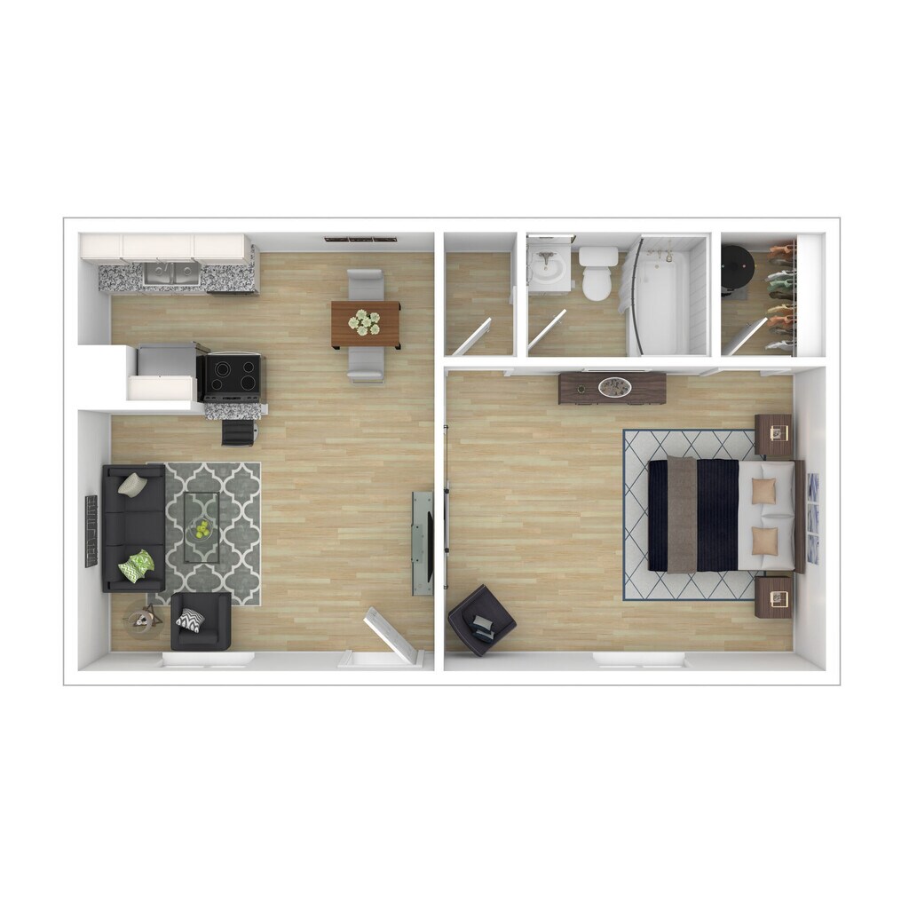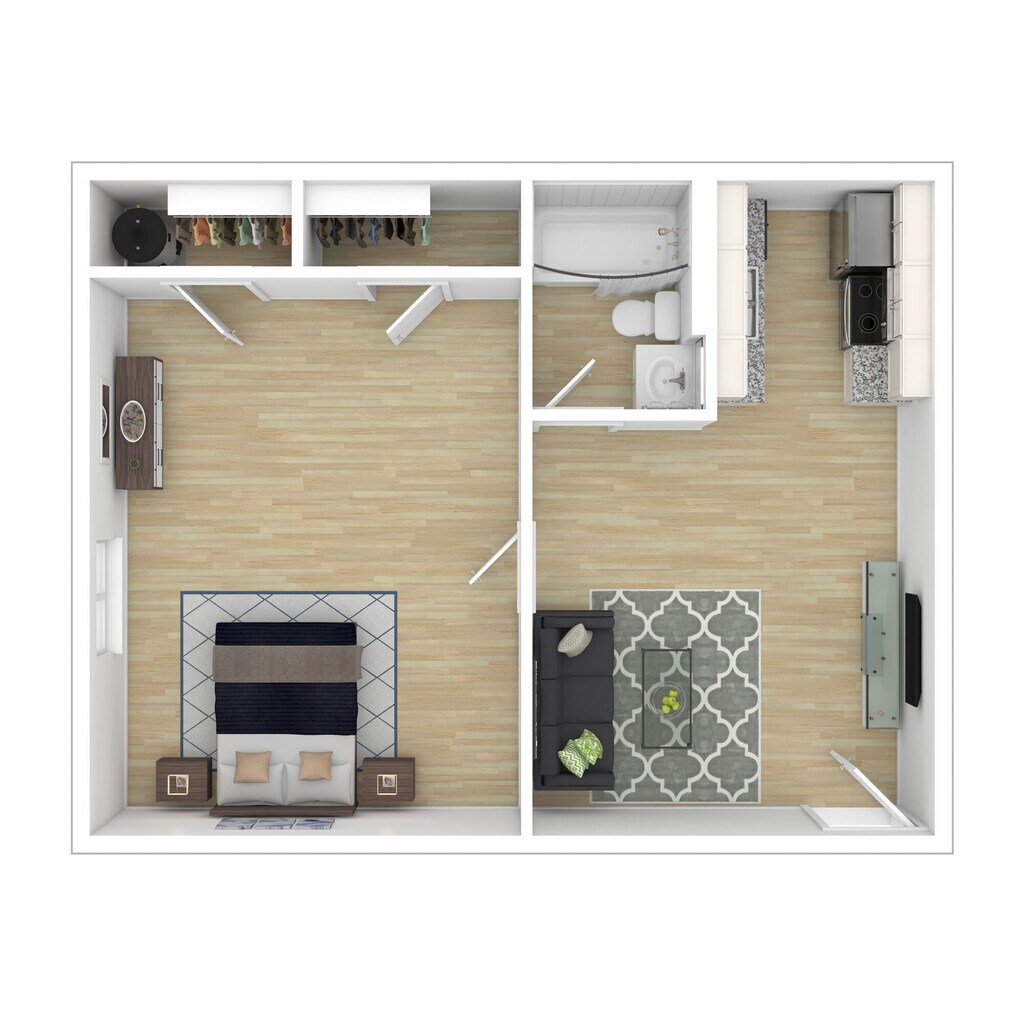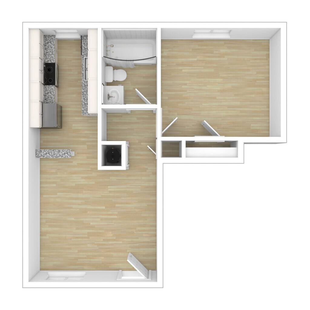 A1D - Floorplan 3 Apartment Unit: C402Apartment Model: A1D$1,1251 Bedroom, 1 Bath, 502 sq ftAvailable NowFloorplan A2C