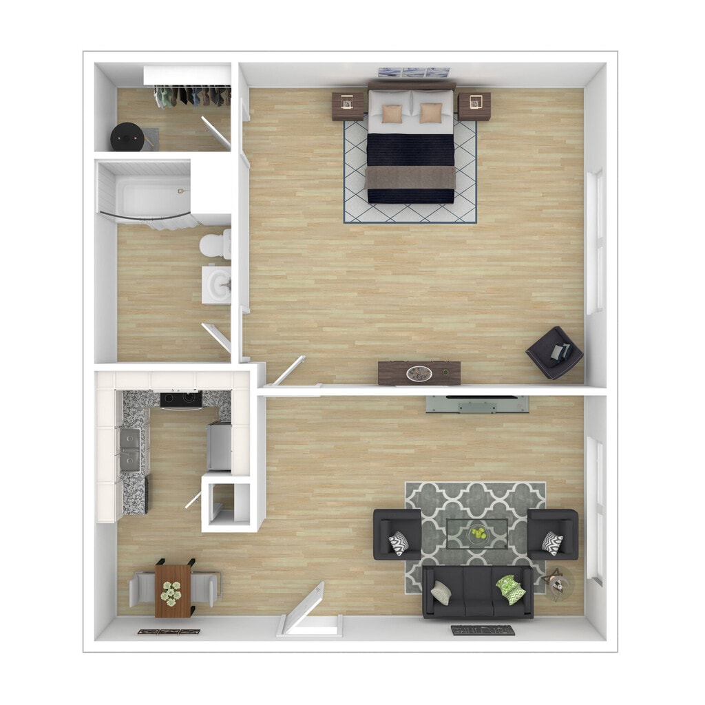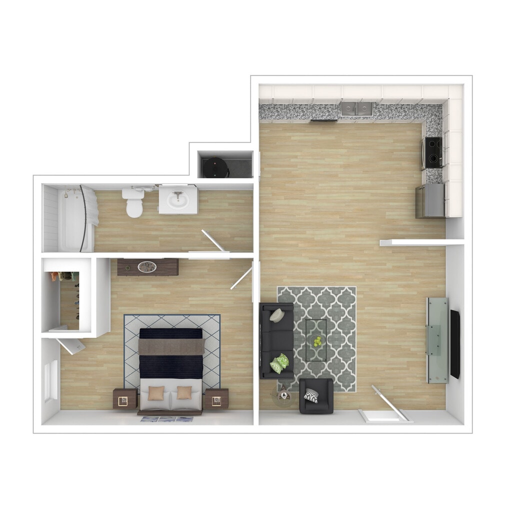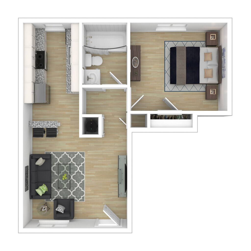 A1D - Floorplan 3 Apartment Unit: C402Apartment Model: A1D$1,1251 Bedroom, 1 Bath, 502 sq ftAvailable NowFloorplan A2C