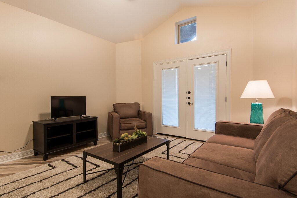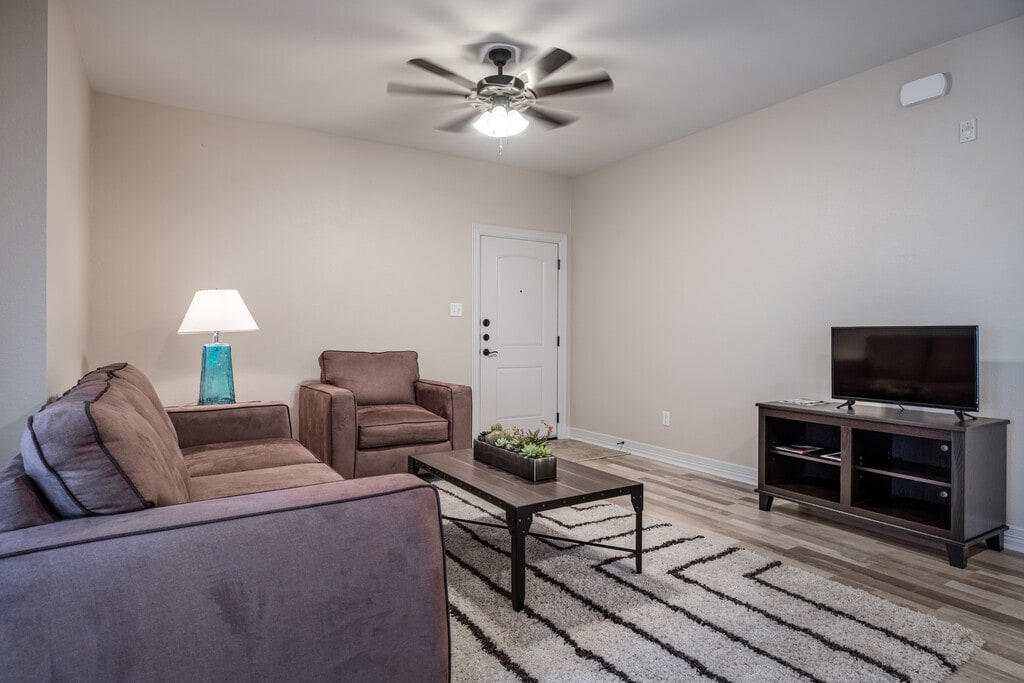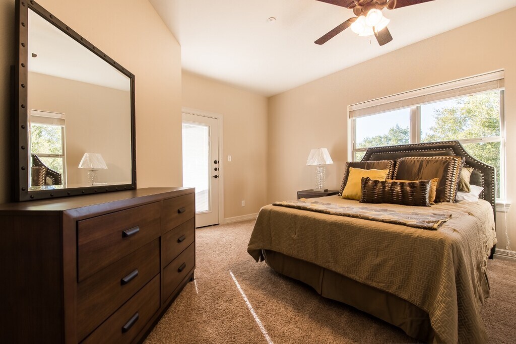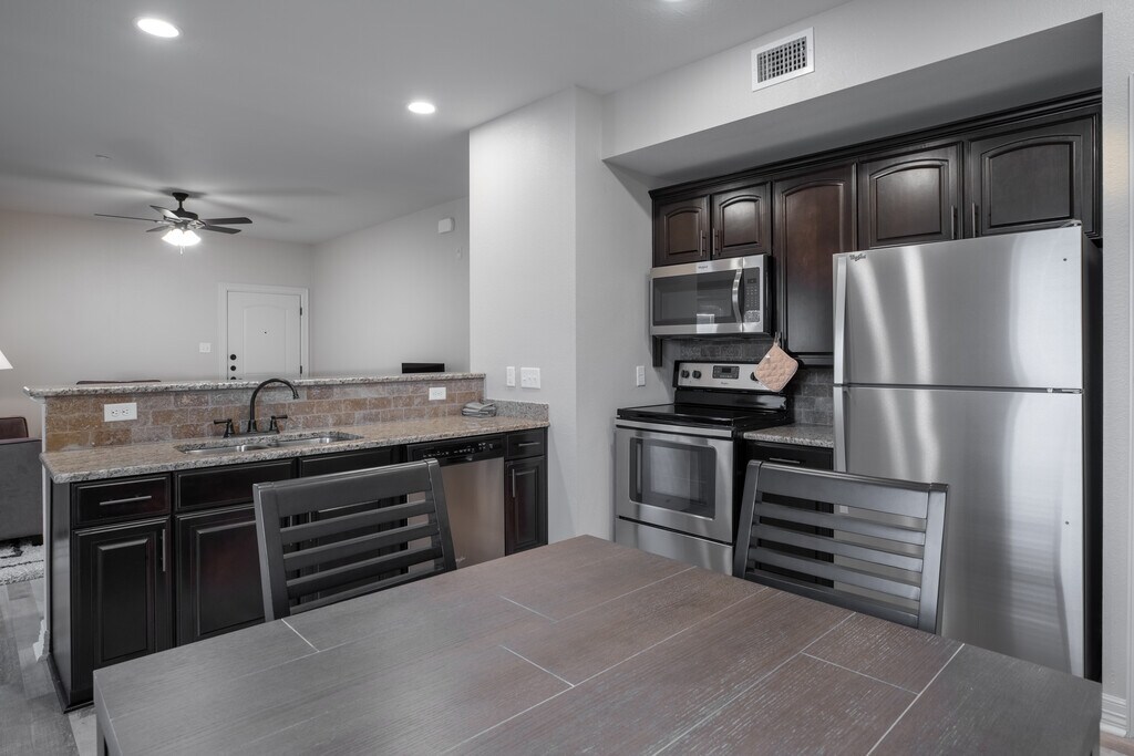 The Ranch at Riverside Parkway is the finest in upscale luxury apartment home living in the Bryan-College Station area. Our gated, pet-friendly community offers 1 and 2 bedroom floorplans with luxury interior finishes including genuine hardwood floors, plush stain-resistant carpets, Travertine tile, upscale porcelain bathtubs with tile surrounds, oil-rubbed bronze fixtures, vaulted ceilings on the 3rd floor, and generous walk-in closets. Every unit includes a modern kitchen with beautiful custom cabinets, Whirlpool stainless steel appliances, spacious granite countertops, and Chicago brick backsplashes. Covered balconies, featured in every unit, put residents in the center of breathtaking natural surroundings, rolling hillsides, and the natural banks of Turkey Creek. Experience the lightning speeds of 25 Mbps Fiber-Optic Internet, upgradable to 1 Gbps, wired directly to every unit. Residents have the exclusive opportunity to join Traditions Club with either a Golf or Social membership. The Ranch at Riverside Parkway is minutes away from everything including the Texas A&M Health Science Center, Traditions Club, the Stella Hotel, the Biocorridor, RELLIS, Mays Business School, The College of Engineering, The College of Agriculture and Life Sciences, The College of Veterinary Medicine, Nutrabolt, ViaSat, iBio, Fujifilm Diosynth, Lakewalk Town Center, Texas A&M Equine Complex, Texas A&M Engineering Extension Service (TEEX), Texas A&M Engineering Experiment Station (TEES), AgriLife Extension Service, Main Campus, Research Park, and Kyle Field.