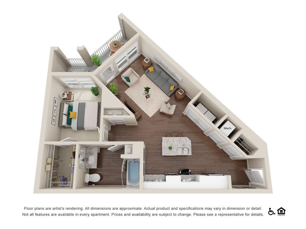Apartment Model: SceneFrom $1,6191 Bedroom, 1 Bath, 815 sq ftAvailable NowFloor plans are artist's rendering. All dimensions are approximate. Actual product and specifications may vary in dimension or detail. Not all features are available in every rental home. Prices and availability are subject to change. Base rent is based on monthly frequency. Additional fees may apply, such as but not limited to package delivery, trash, water, amenities, etc. Deposits vary. Please see a representative for details.