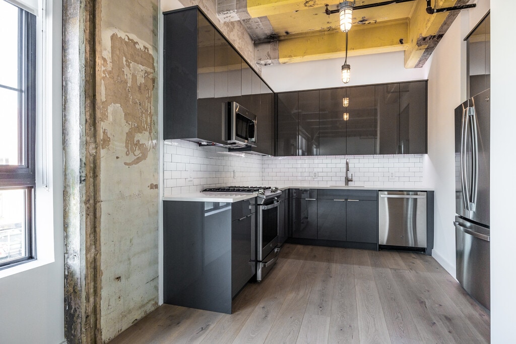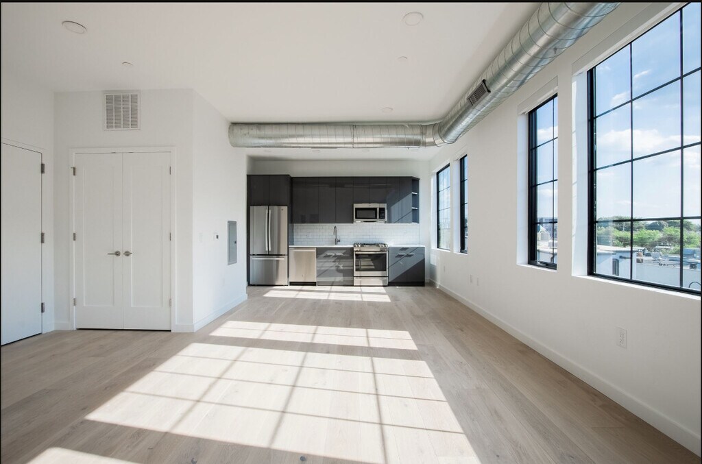 The former newspaper publishing house has been transformed to residential lofts - The Red Bank Standard. Steps to the Red Bank train Station, the local developer didn't skip a detail mixing modern finishes while honoring the integrity of the original building. 10' plus ceilings with huge windows allow sun to pour into your new home. Wide plank, real wood floors throughout, extra attention to sound proofing, spa-like bathrooms with whimsical penny tile floors, central HVAC, washer / dryers in unit, upgraded stainless steel appliances include french door refrigerators with bottom freezer and integrated ice maker, natural gas cooking with convection oven, dishwasher & microwave. Quartz counter tops, and custom, contemporary cabinetry. Amazing roof top amenities with Navesink River views.