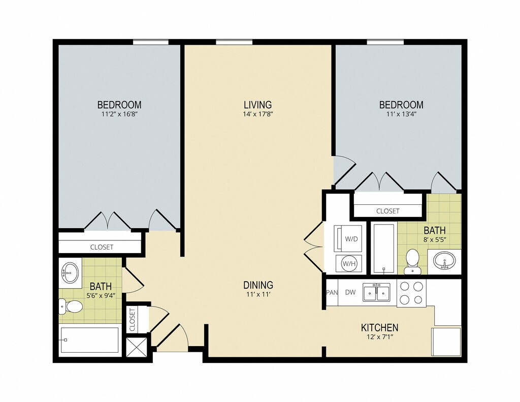 2 Beds, 2 Baths, 1314 sq ftAvailable NowLargest 2 BedroomThis is the largest 2 Bedroom at this PropertyModel Gallery