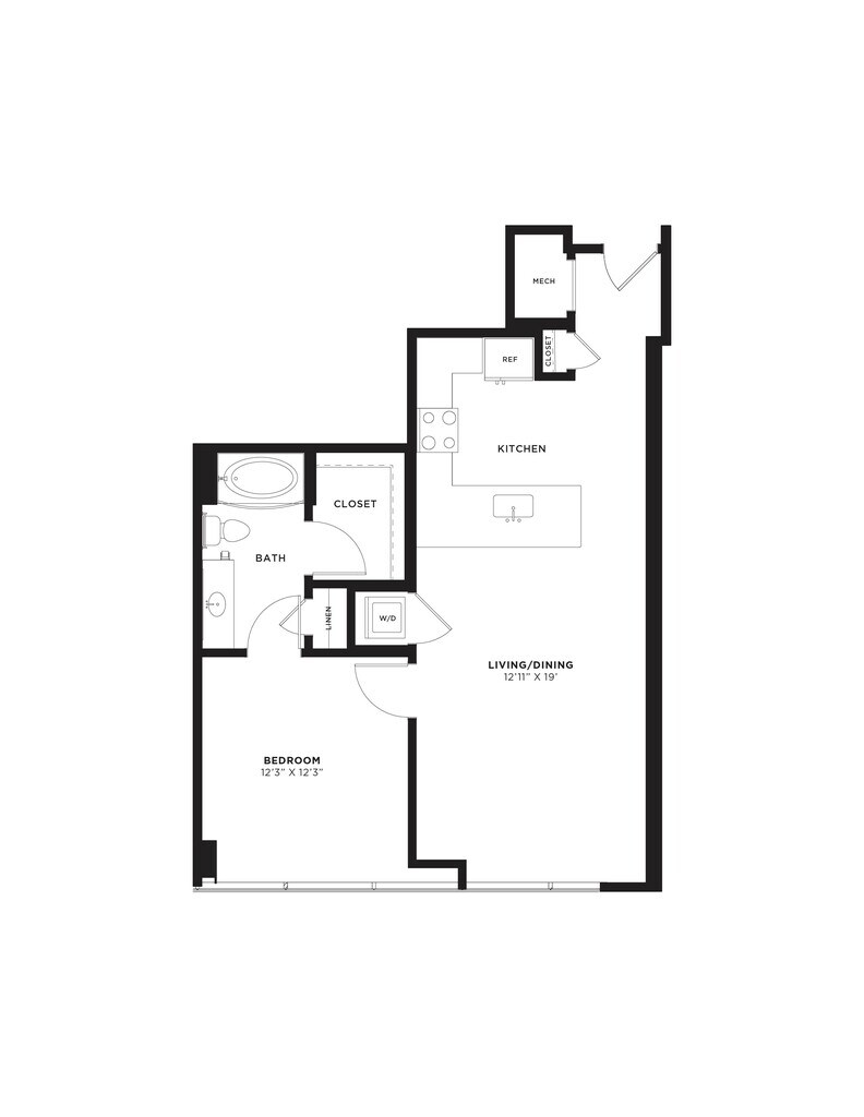 Studio-SC - Floorplan 1 Apartment Unit: 2901Apartment Model: Studio-SC$2,539Studio, 1 Bath, 576 sq ftAvailable NowStudio-SD