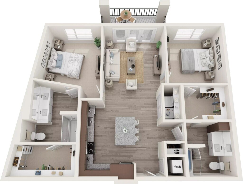1 Bed, 2 Baths, 1007 sq ftAvailable NowLargest 1 BedroomThis is the largest 1 Bedroom at this PropertyModel Gallery