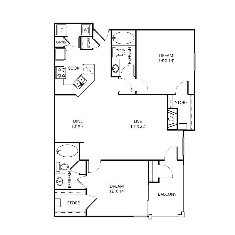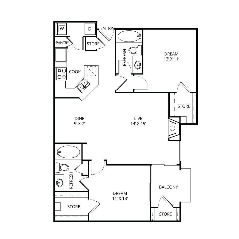 2 Beds, 2 Baths, 1182 sq ftAvailable NowModel Gallery