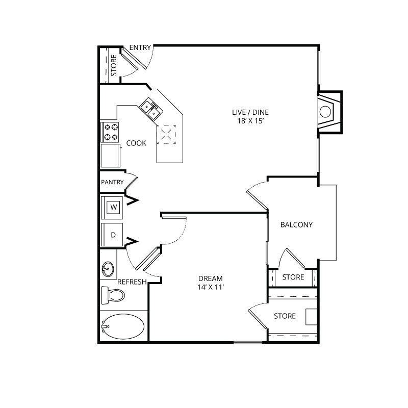Apartment Model: ZinfandelFrom $1,1991 Bedroom, 1 Bath, 918 sq ftUnavailableFloorplansPhotos![]()