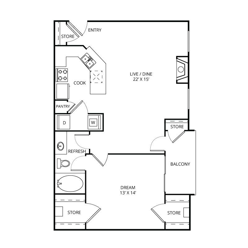 1 Bed, 1 Bath, 918 sq ftLargest 1 BedroomThis is the largest 1 Bedroom at this PropertyModel Gallery