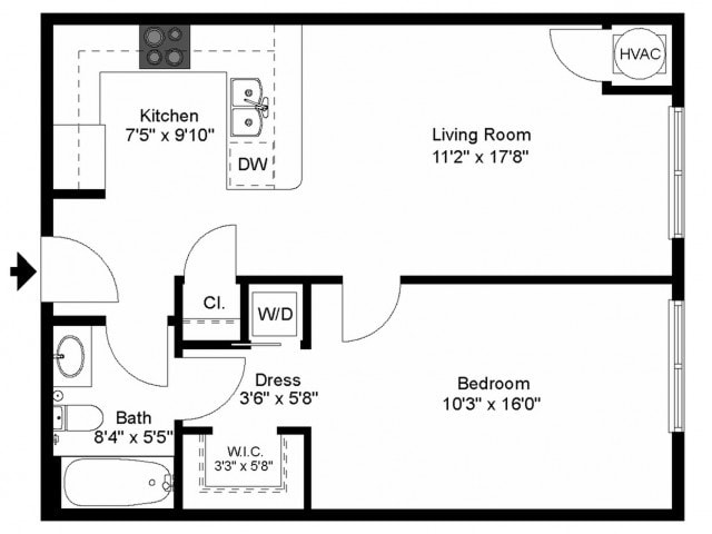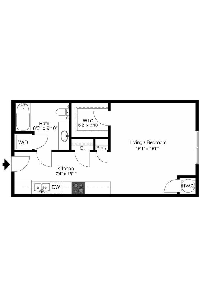 Studio, 1 Bath, 515 sq ftAvailable NowModel Gallery