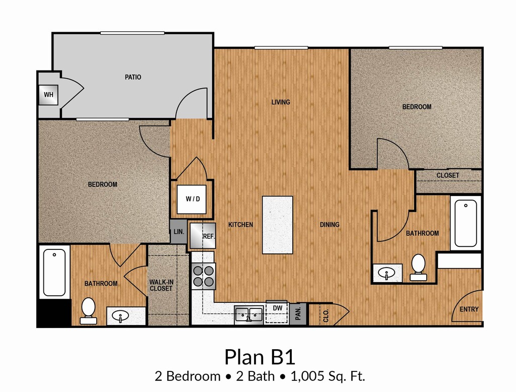 Apartment Model: B1 DownstairsCall For Rates2 Bedroom, 2 Bath, 1005 sq ftUnavailable![]()