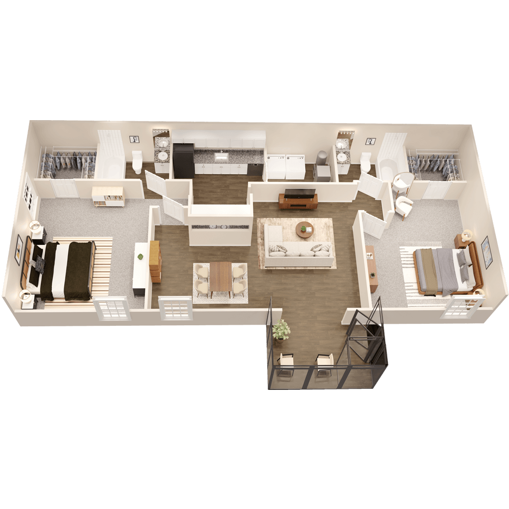 Apartment Model: B2From $1,2002 Bedroom, 2 Bath, 966-1064 sq ftAvailable Now![]()