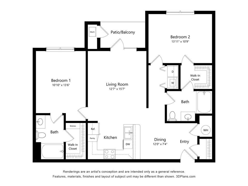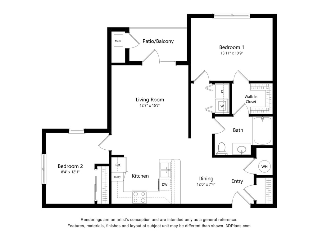 2 Beds, 2.5 Baths, 1900 sq ftLargest 2 BedroomThis is the largest 2 Bedroom at this PropertyModel Gallery