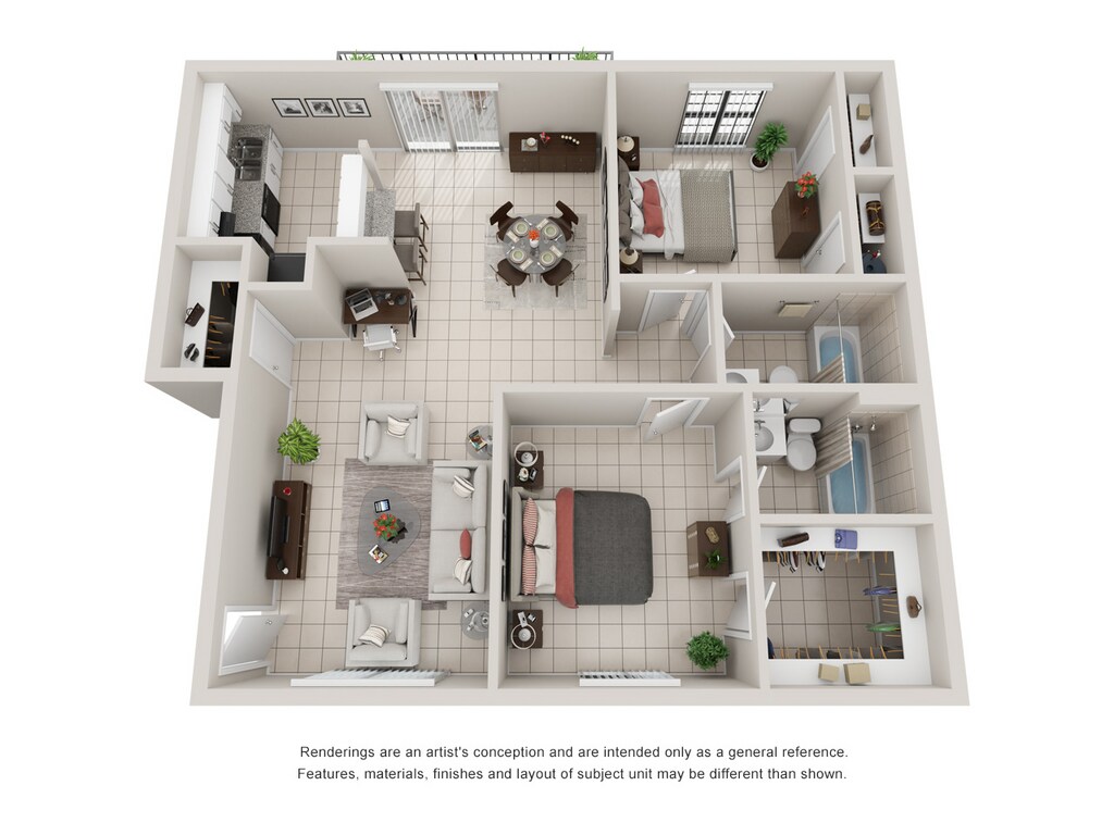 2 Beds, 2 Baths, 943 sq ftModel Gallery